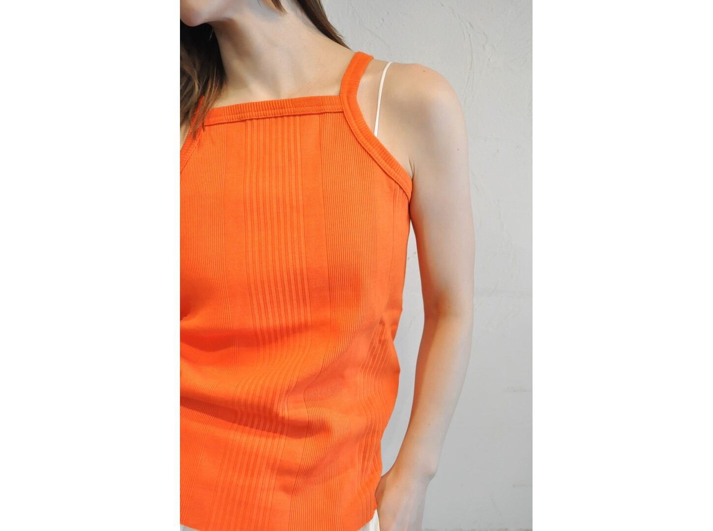 ●筒状に編み上げられる丸胴編みを使用したタンクトップ。