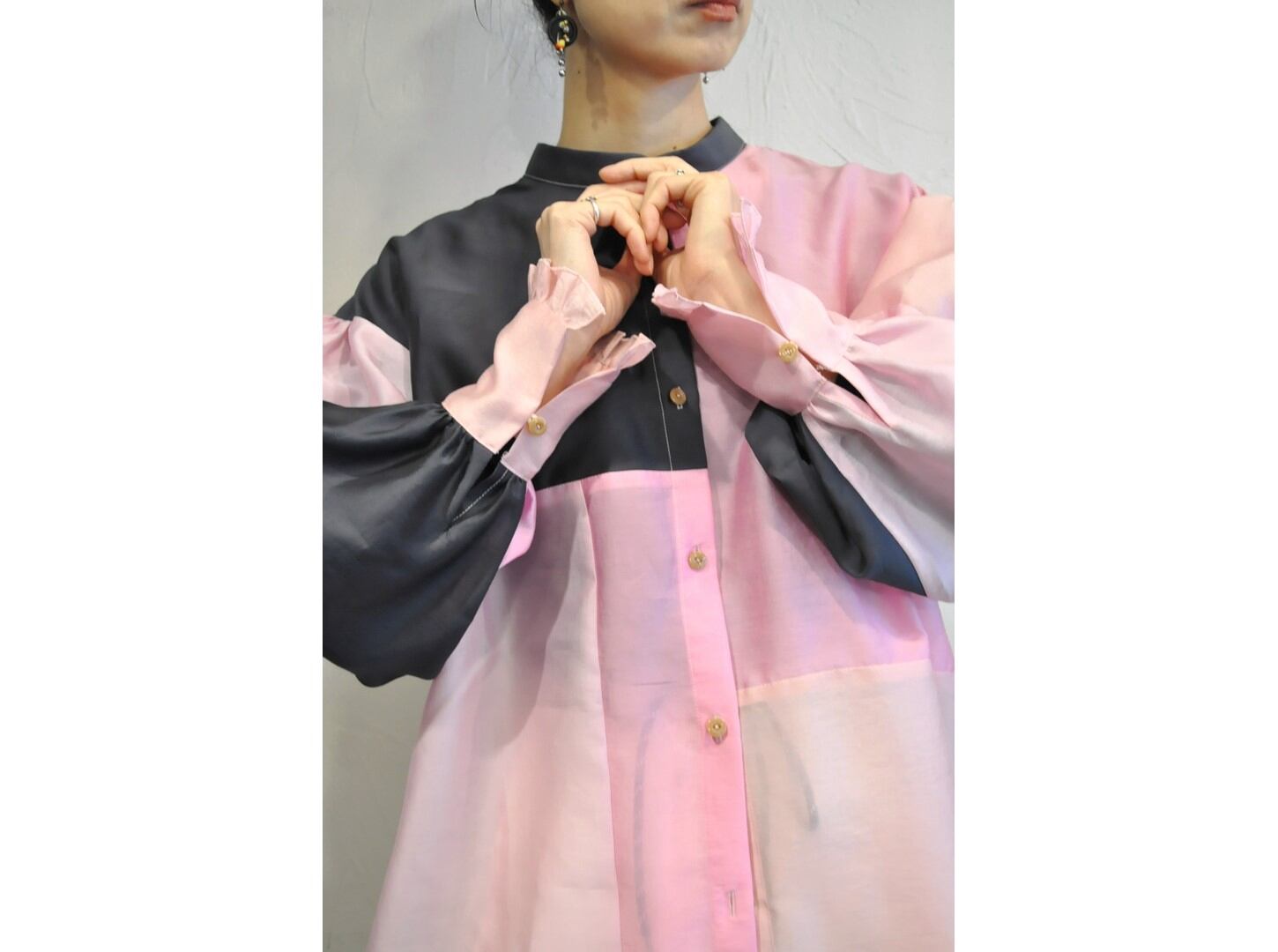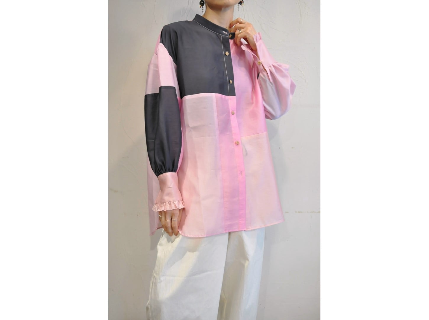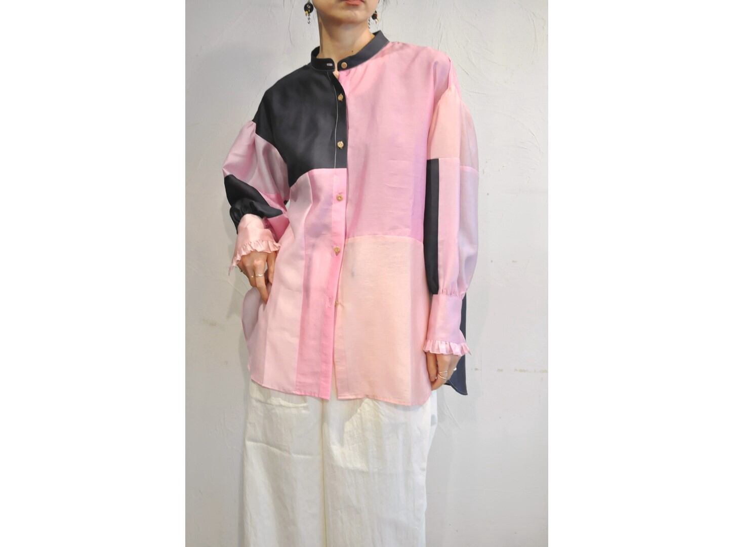 【RehersalL】color patch satin shirt /【リハーズオール】カラーパッチサテンシャツ