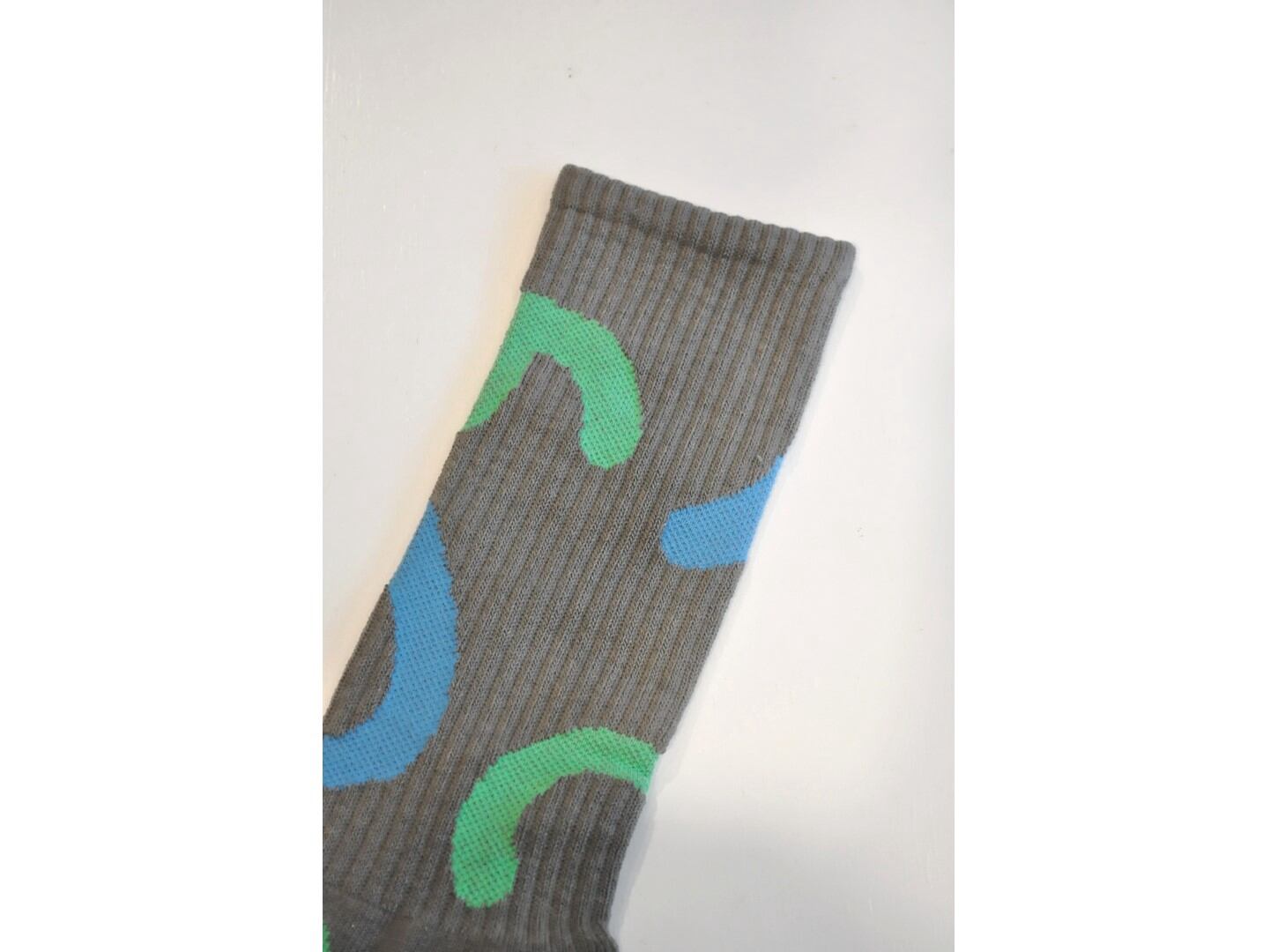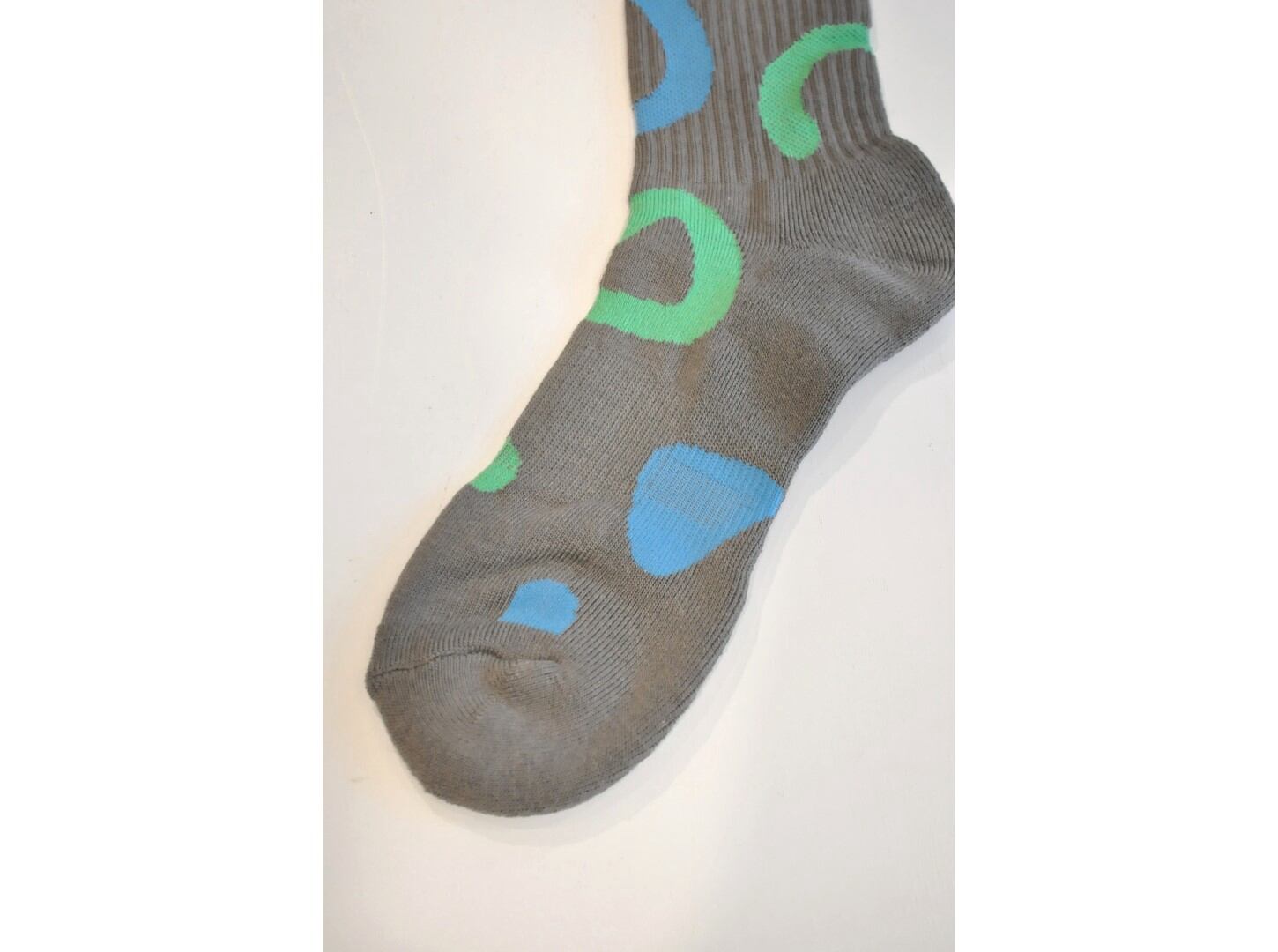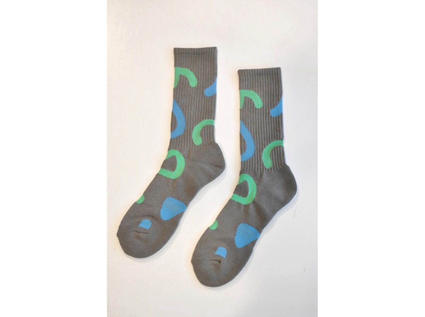 ●遊び心あふれる配色の総柄が目を引くスポーツソックス。