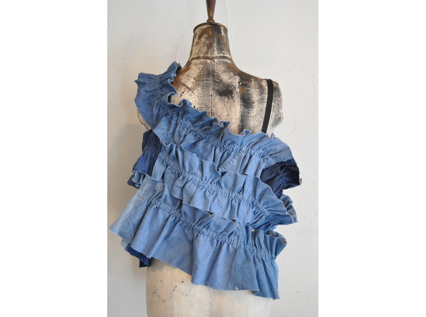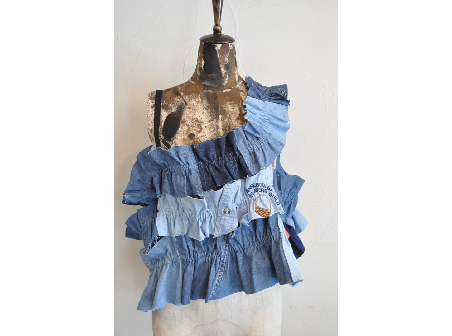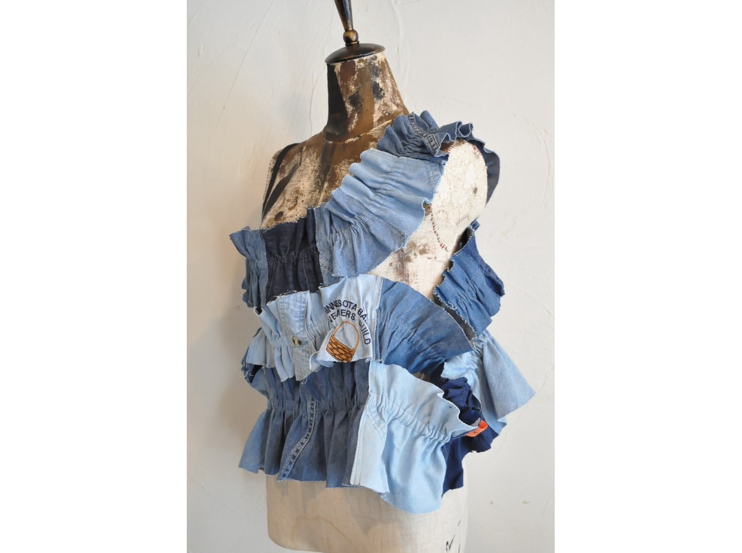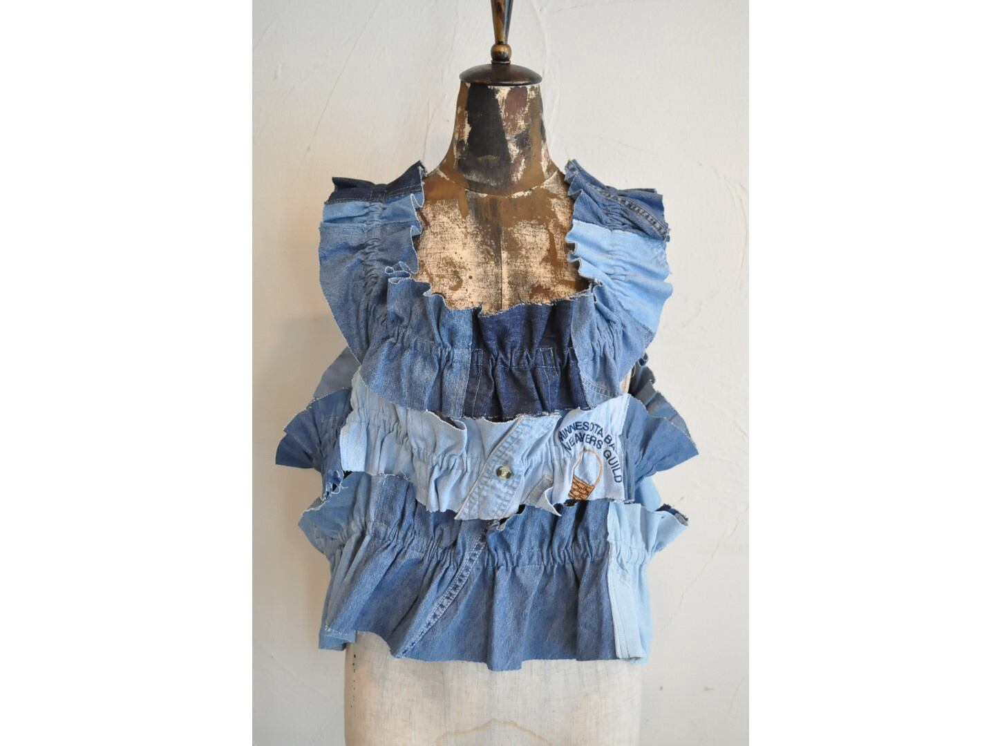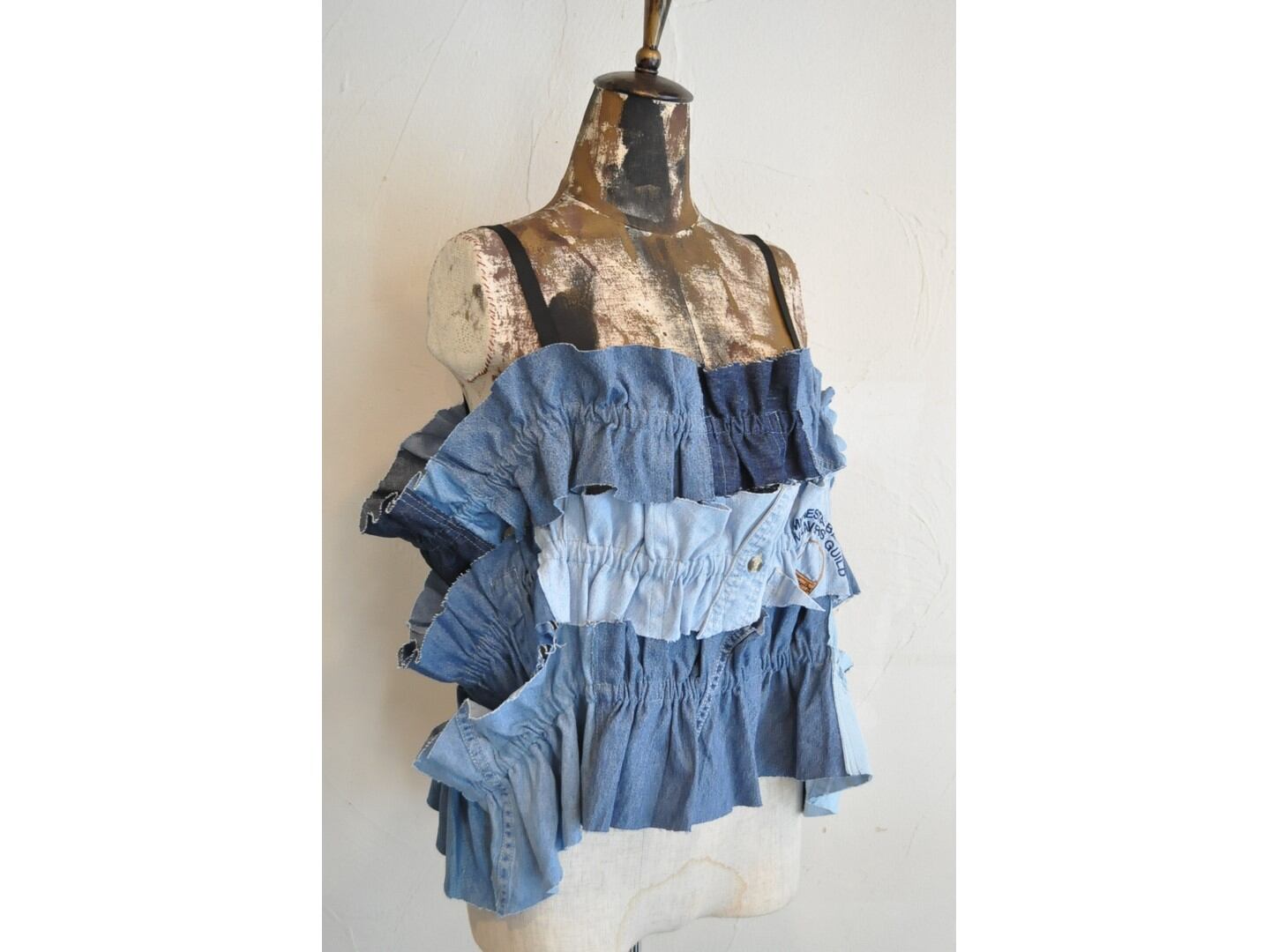 ●古着のダンガリーシャツを解体し、パッチワークしたキャミソール。