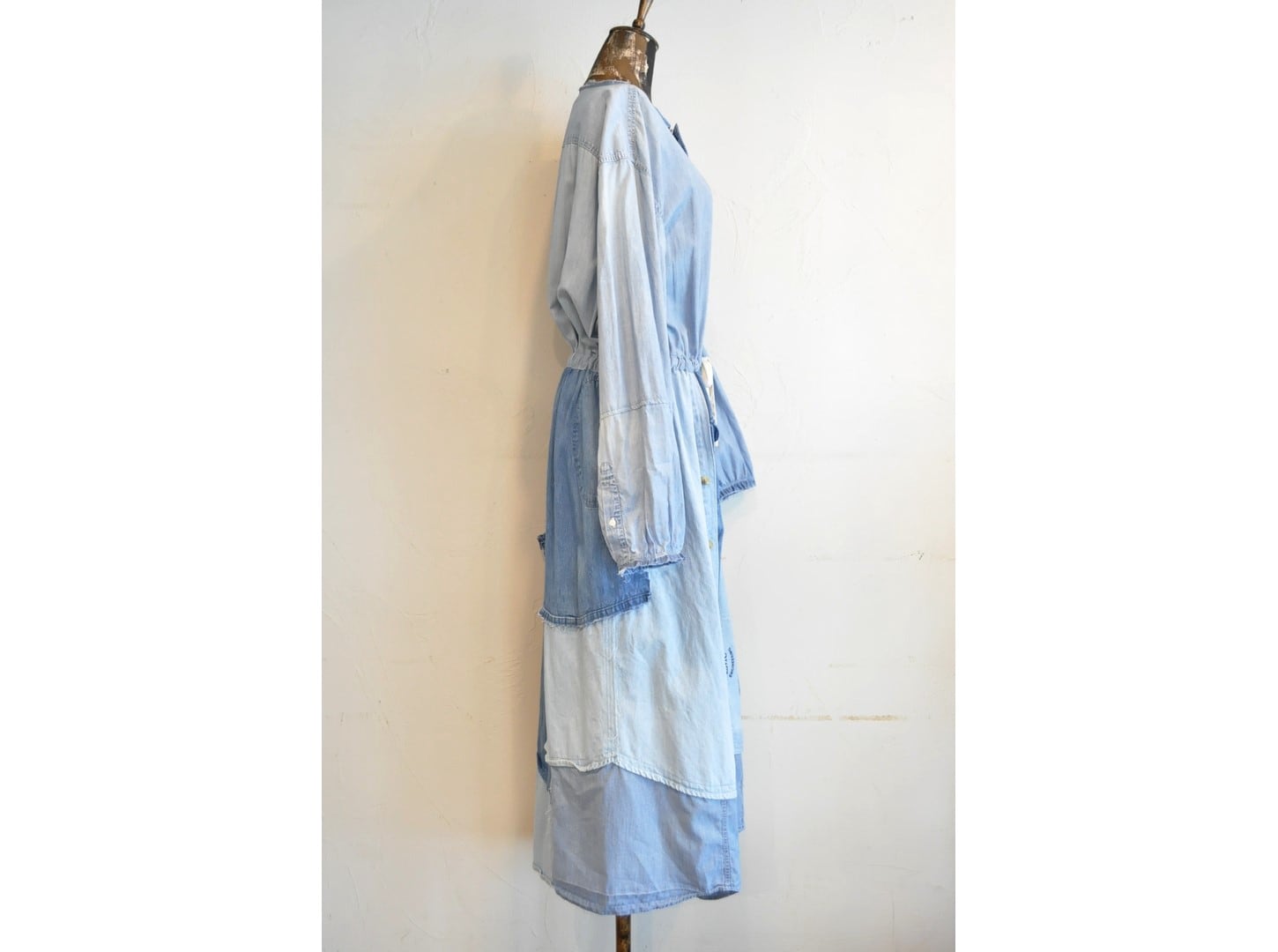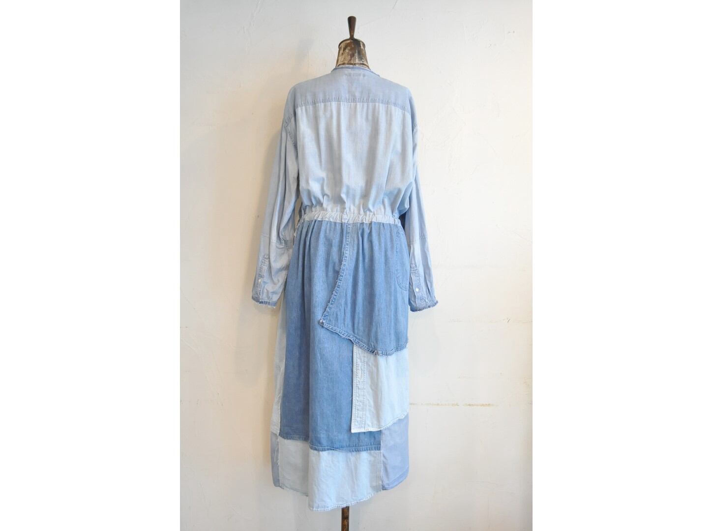 シャツならではのディテールを活かしつつウエストの切り替えから下はパッチワークでボリュームを持たせています。