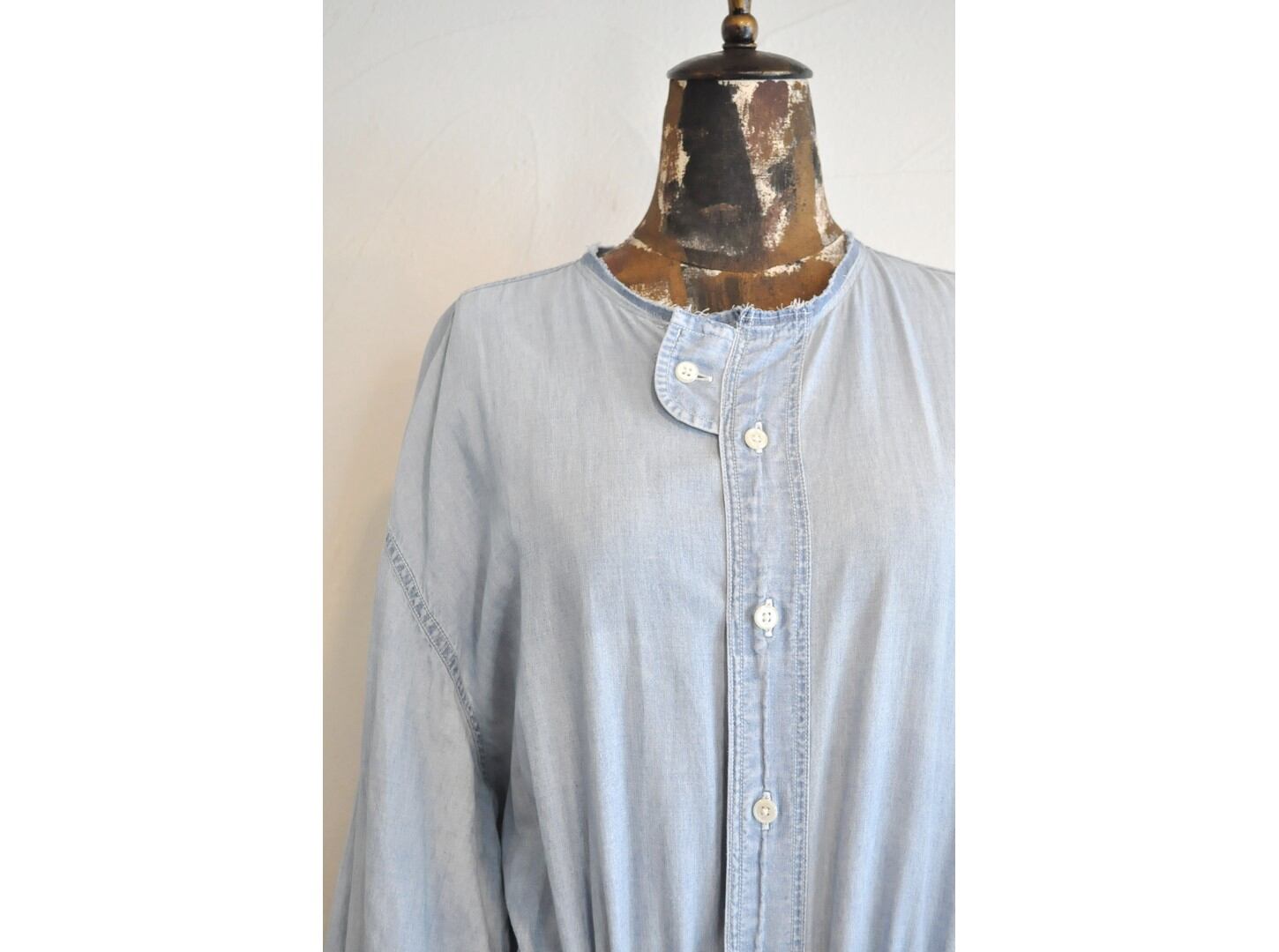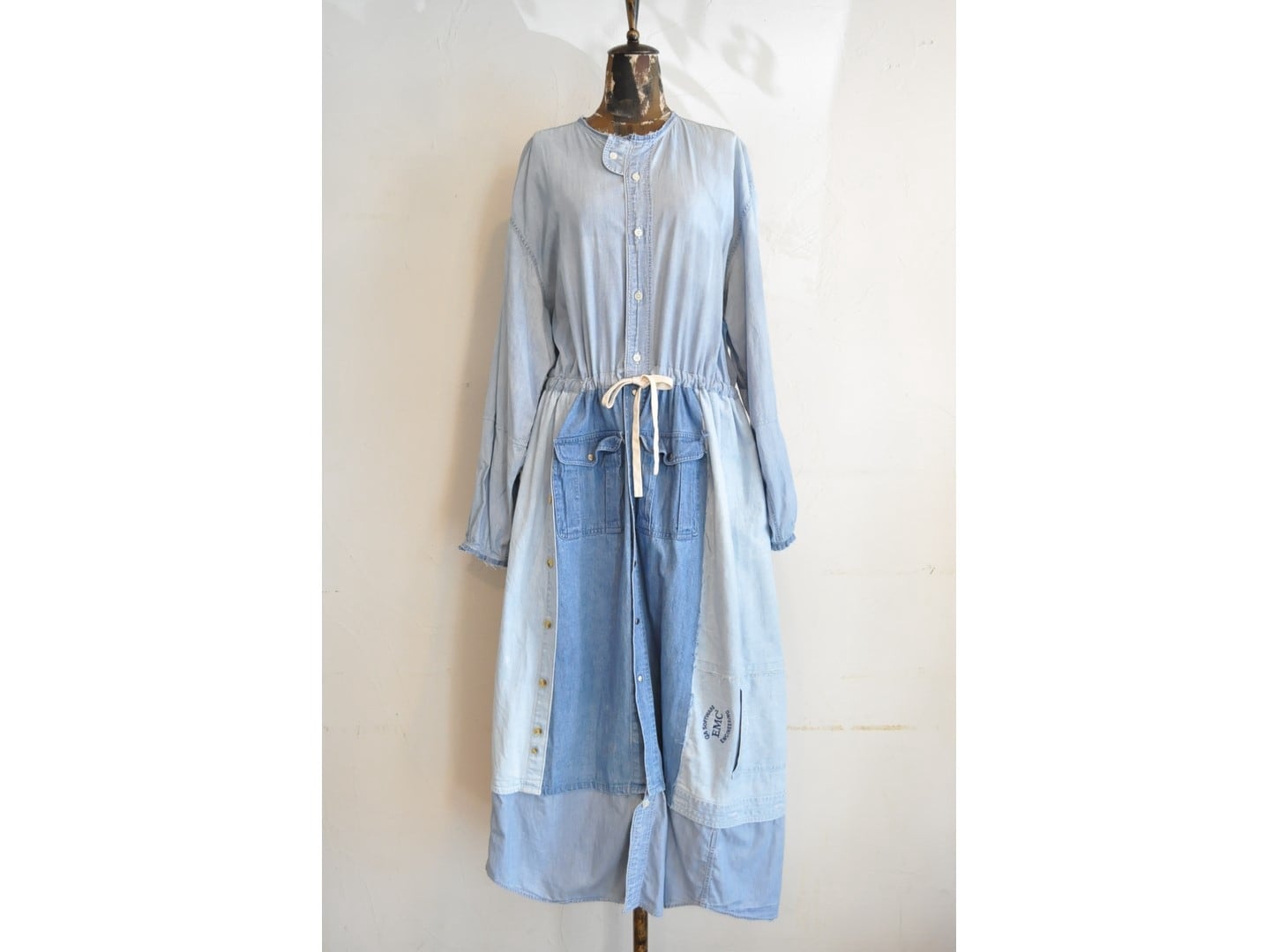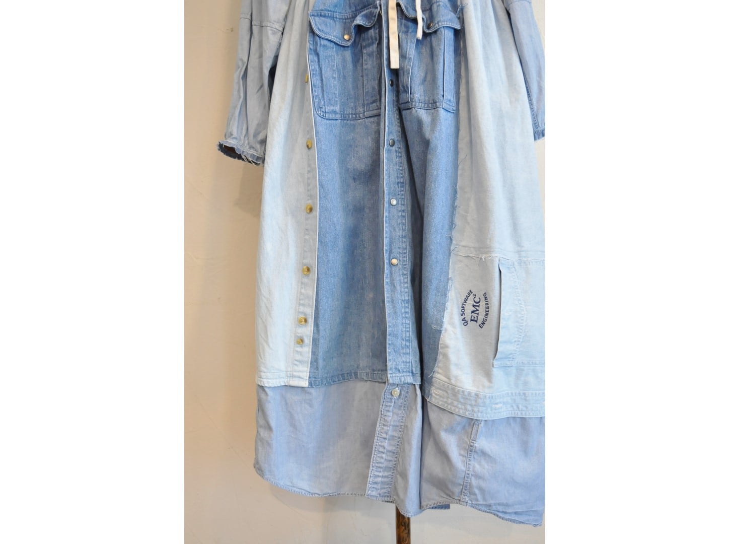 ●古着のシャツを使用して再構築したリメイクワンピース。