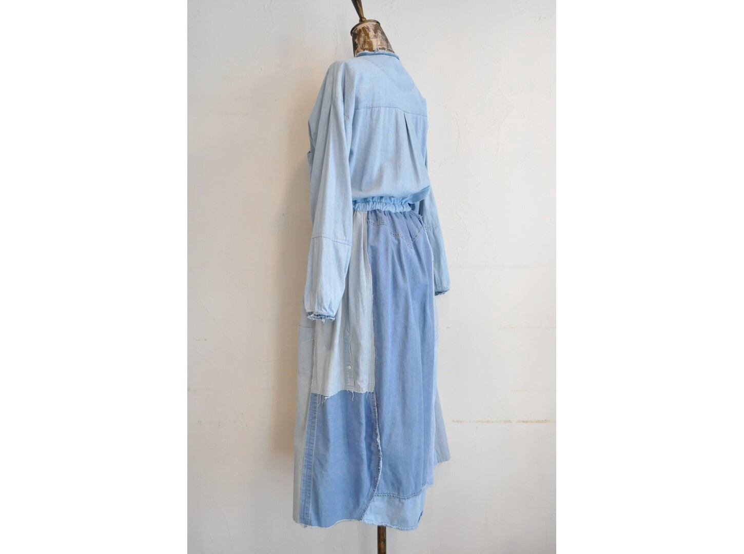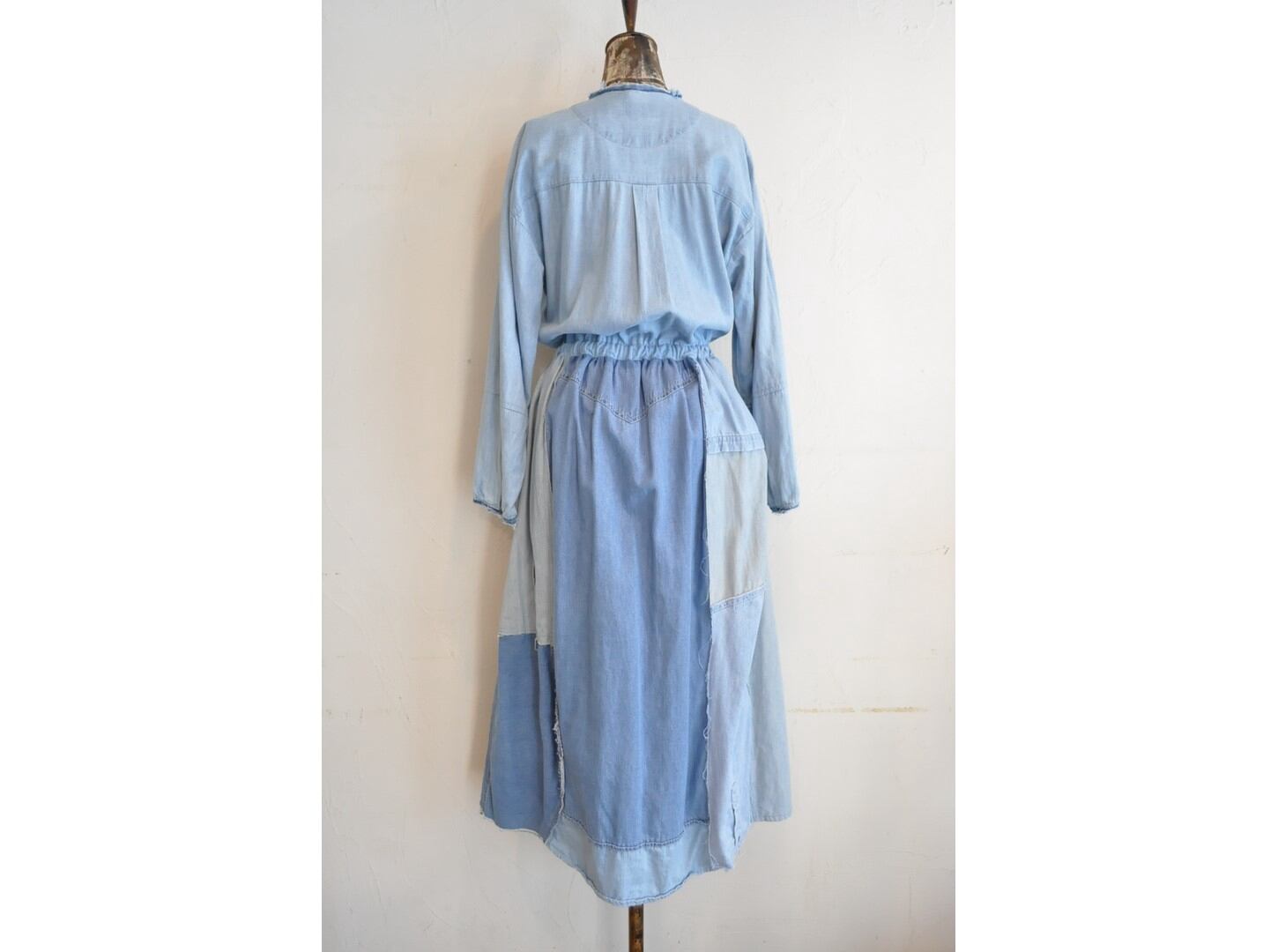 シャツならではのディテールを活かしつつ、ウエストの切り替えから下はパッチワークでボリュームを持たせています。