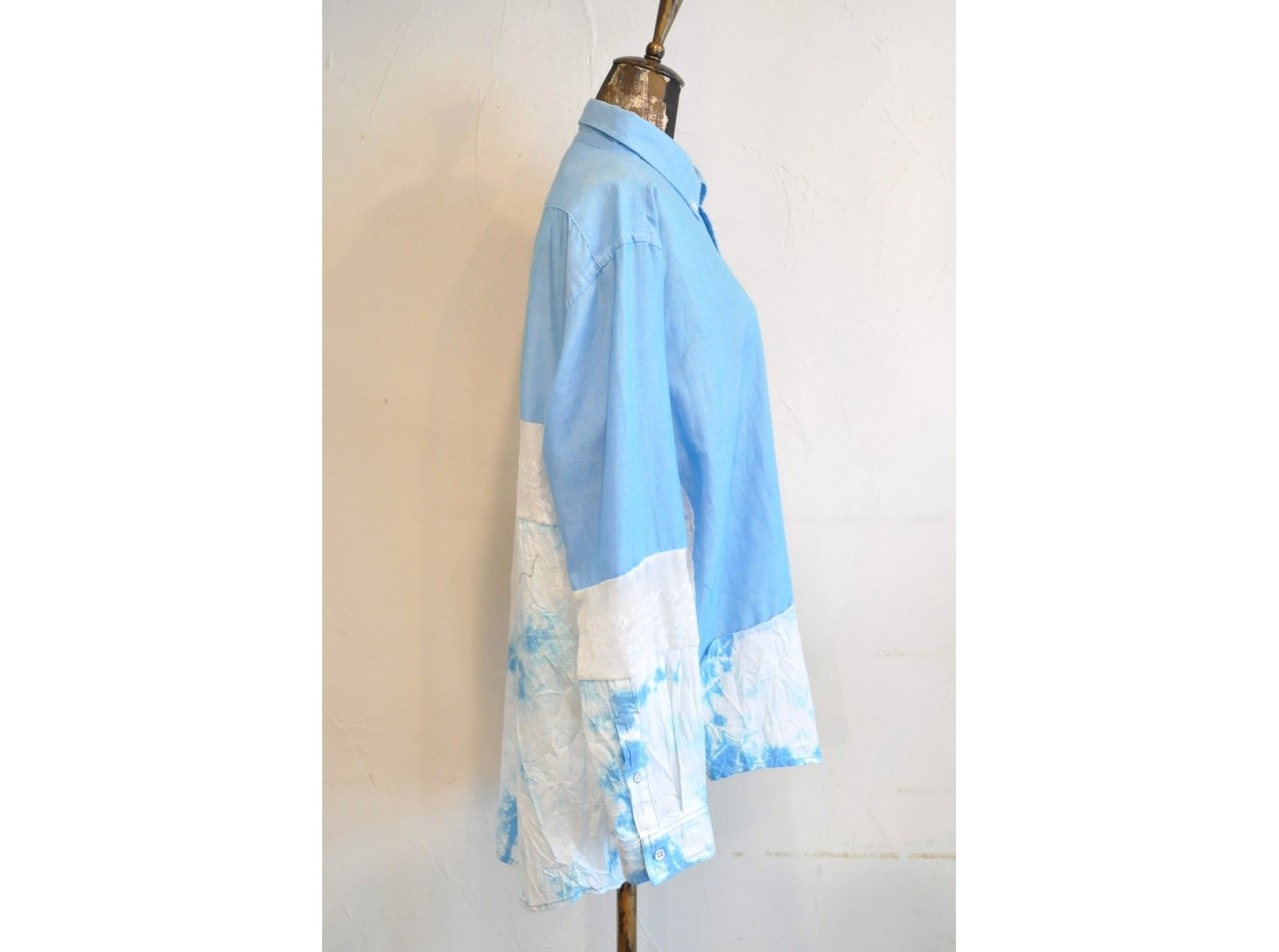 ●古着のシャツをドッキングした大胆なブロッキングが可愛いアイテムです。