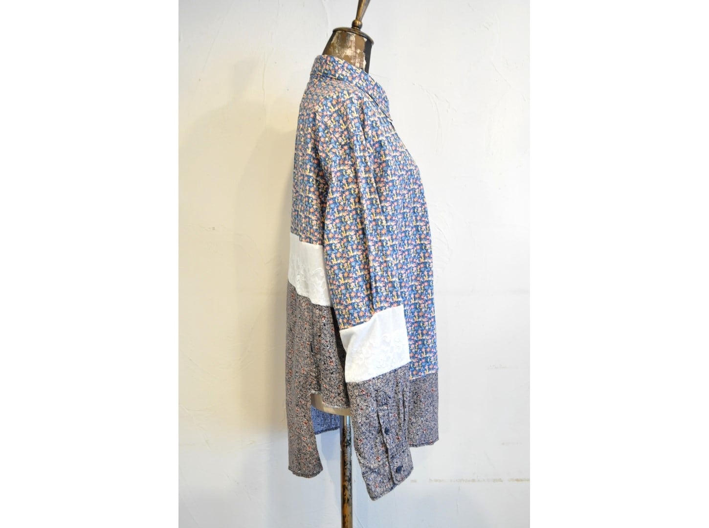 ●古着のシャツをドッキングした大胆なブロッキングが可愛いアイテムです。