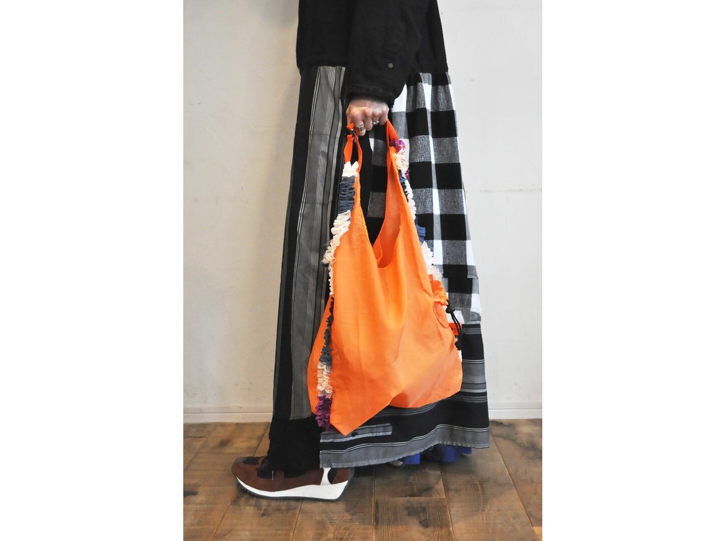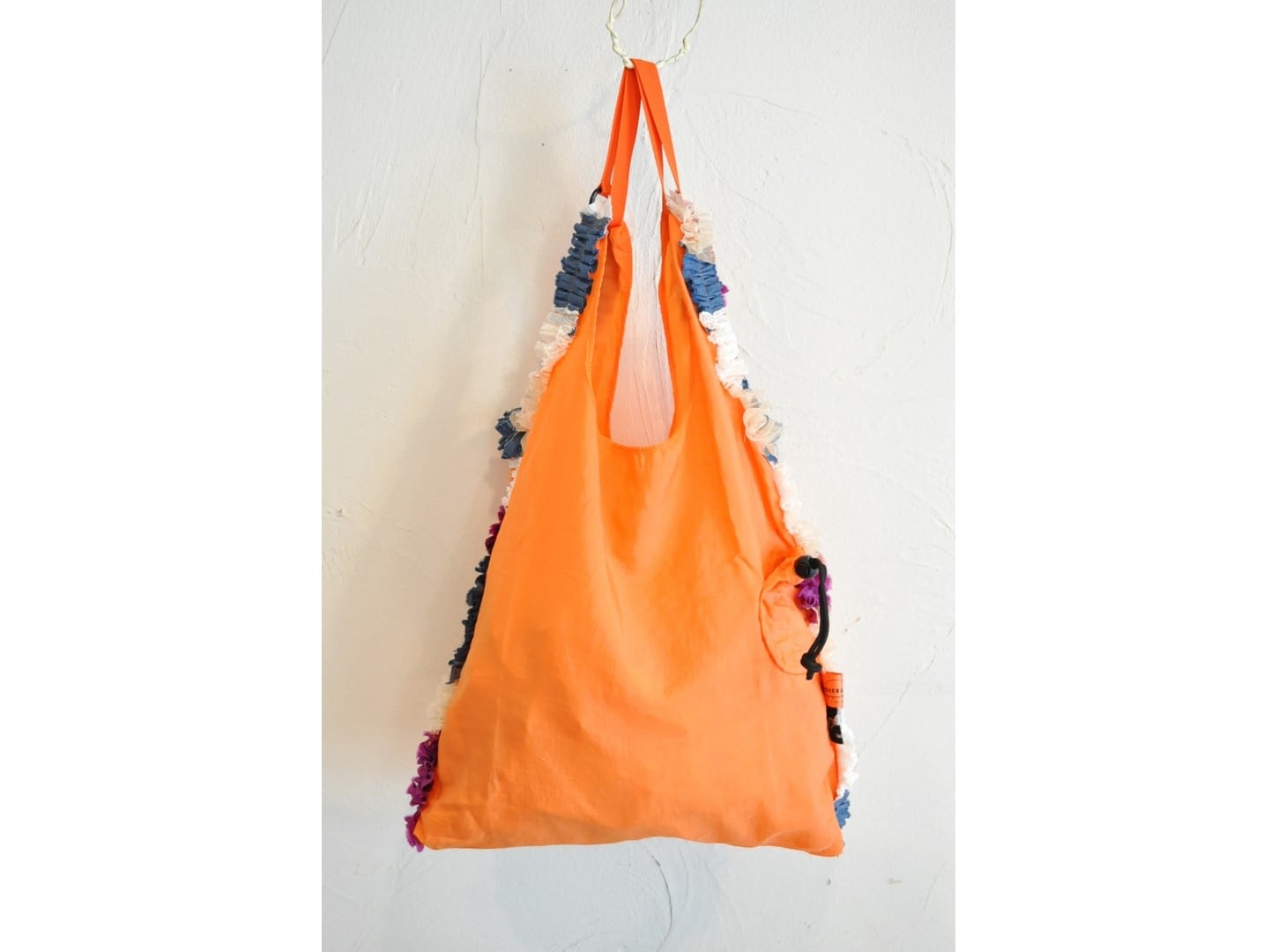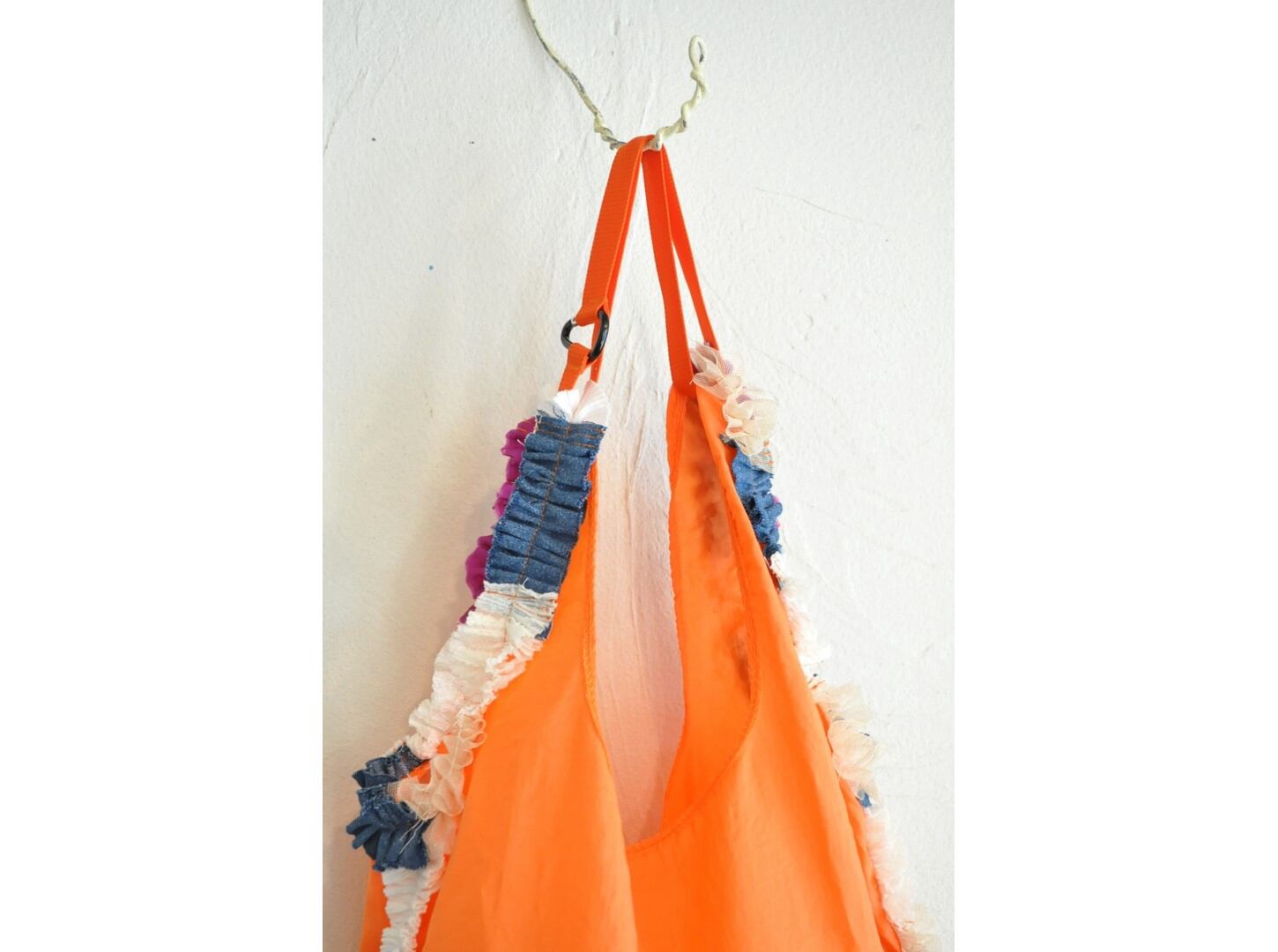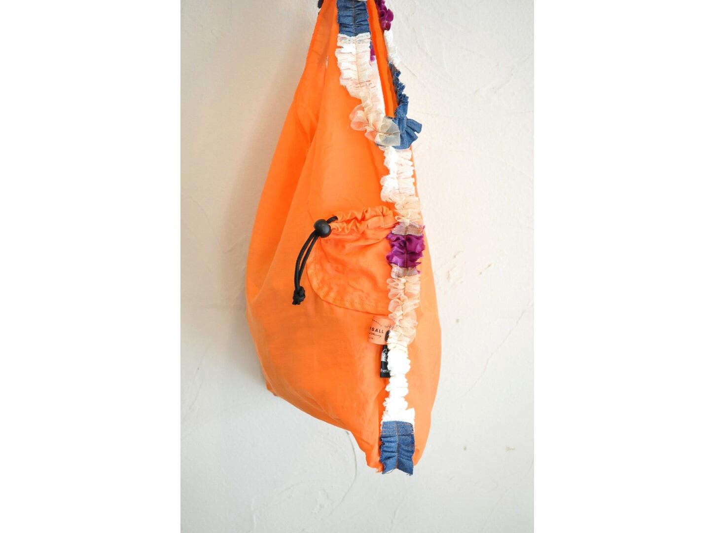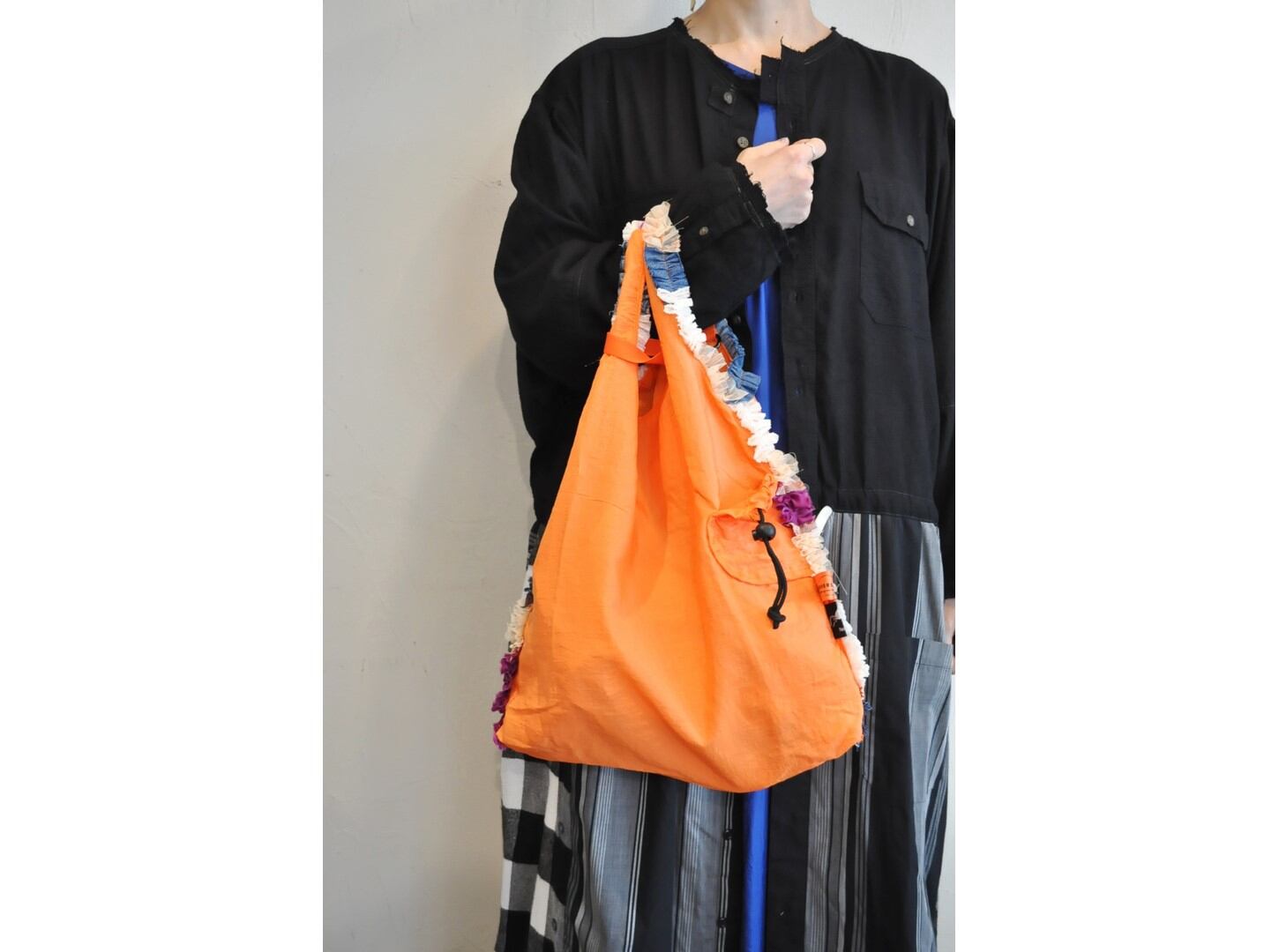 ●様々なカラーリングのナイロンバッグに、コットンやキュプラ素材の爽やかな色合いのフリルがあしらわれたデザイン。