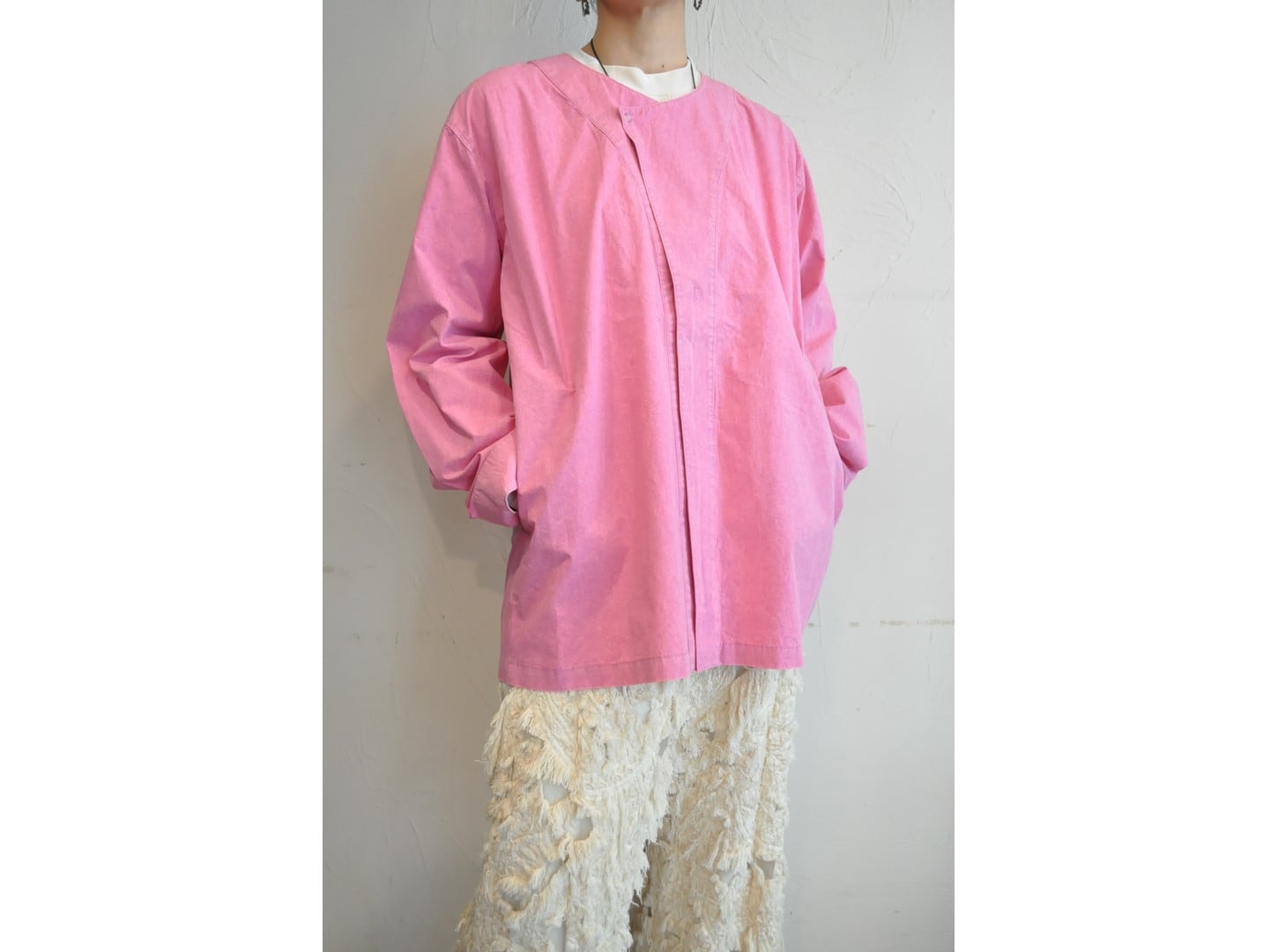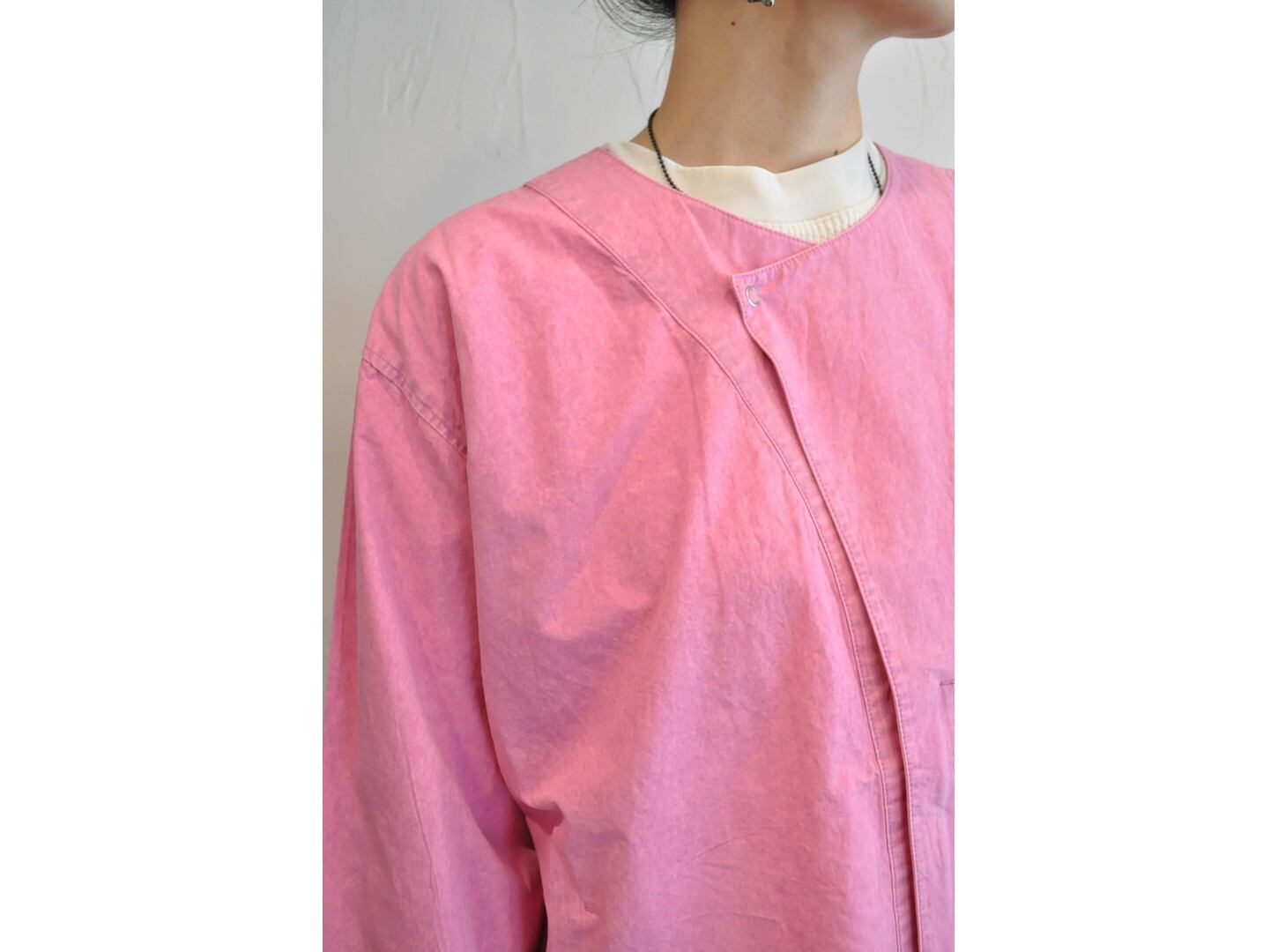 ●ゆったりとしたシルエットのノーカラージャケット。