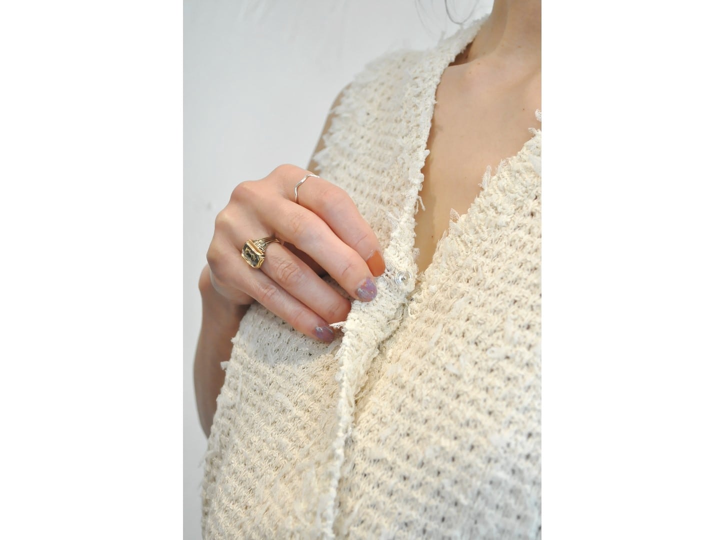 ニットの上品さと相まって、カジュアルなのに洗練された印象。