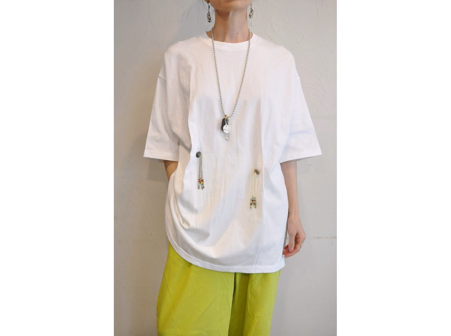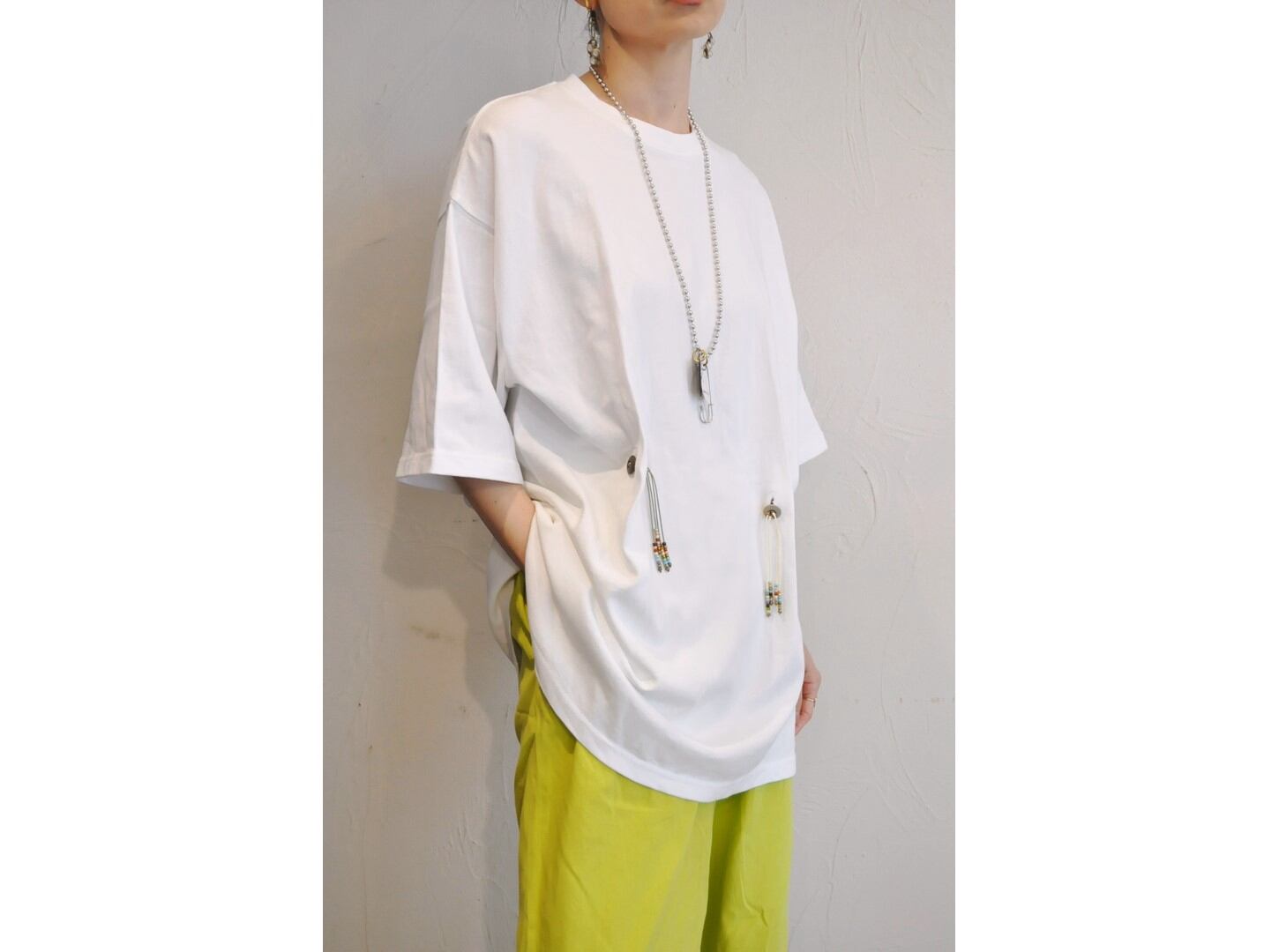 ●フロントに2つ・バックに1つ、大きなボタンホールを施したビッグTシャツ。