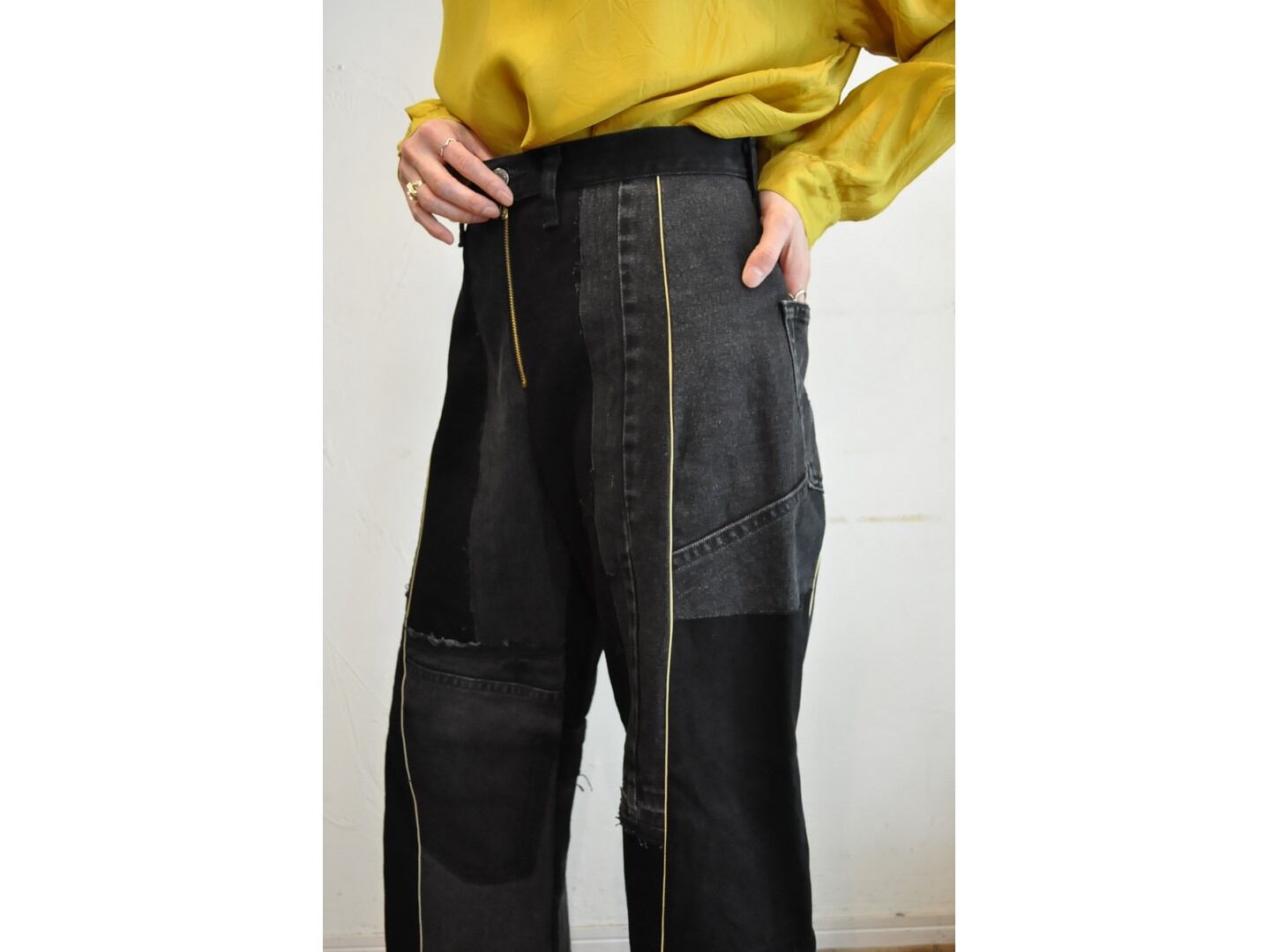 ●古着のデニムを解体しパッチワークしたこだわりの詰まったフレアパンツです。