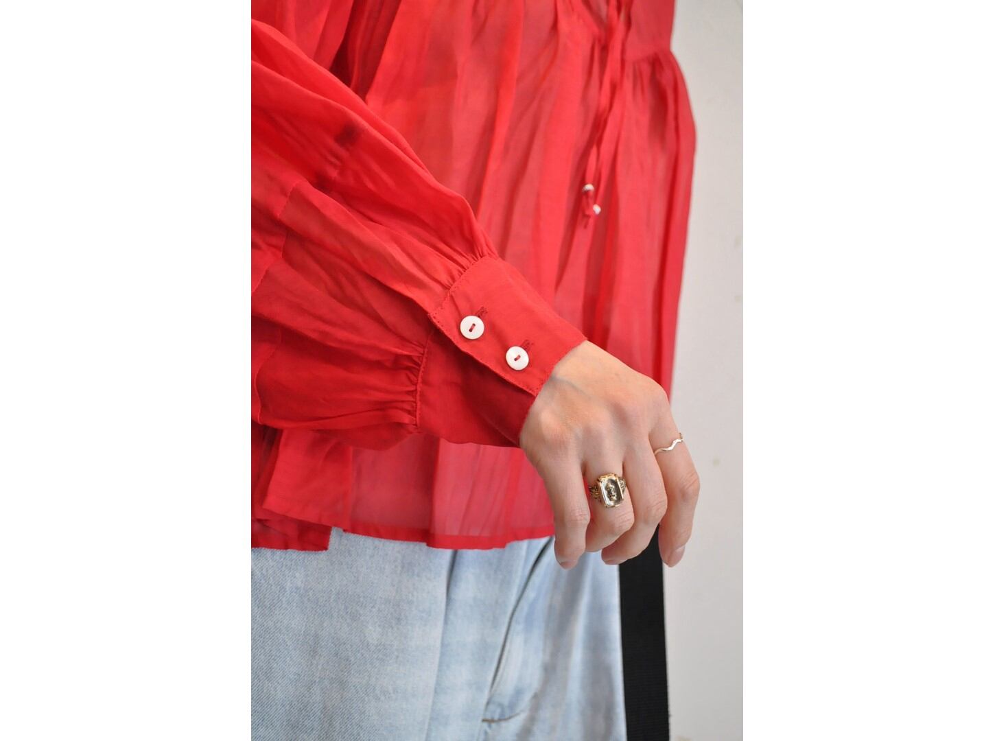 ●上質なシルクコットン素材を使用した柔らかな風合いのシアーブラウス。