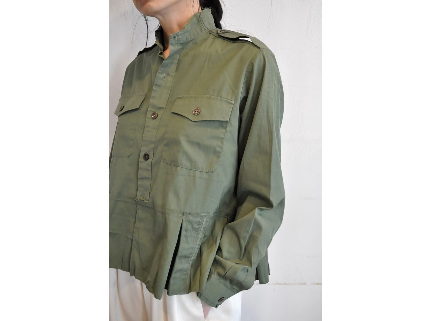 ●イギリス製フィールドシャツをリメイクした、無骨さと女性らしさを両立させるショート丈シャツです。