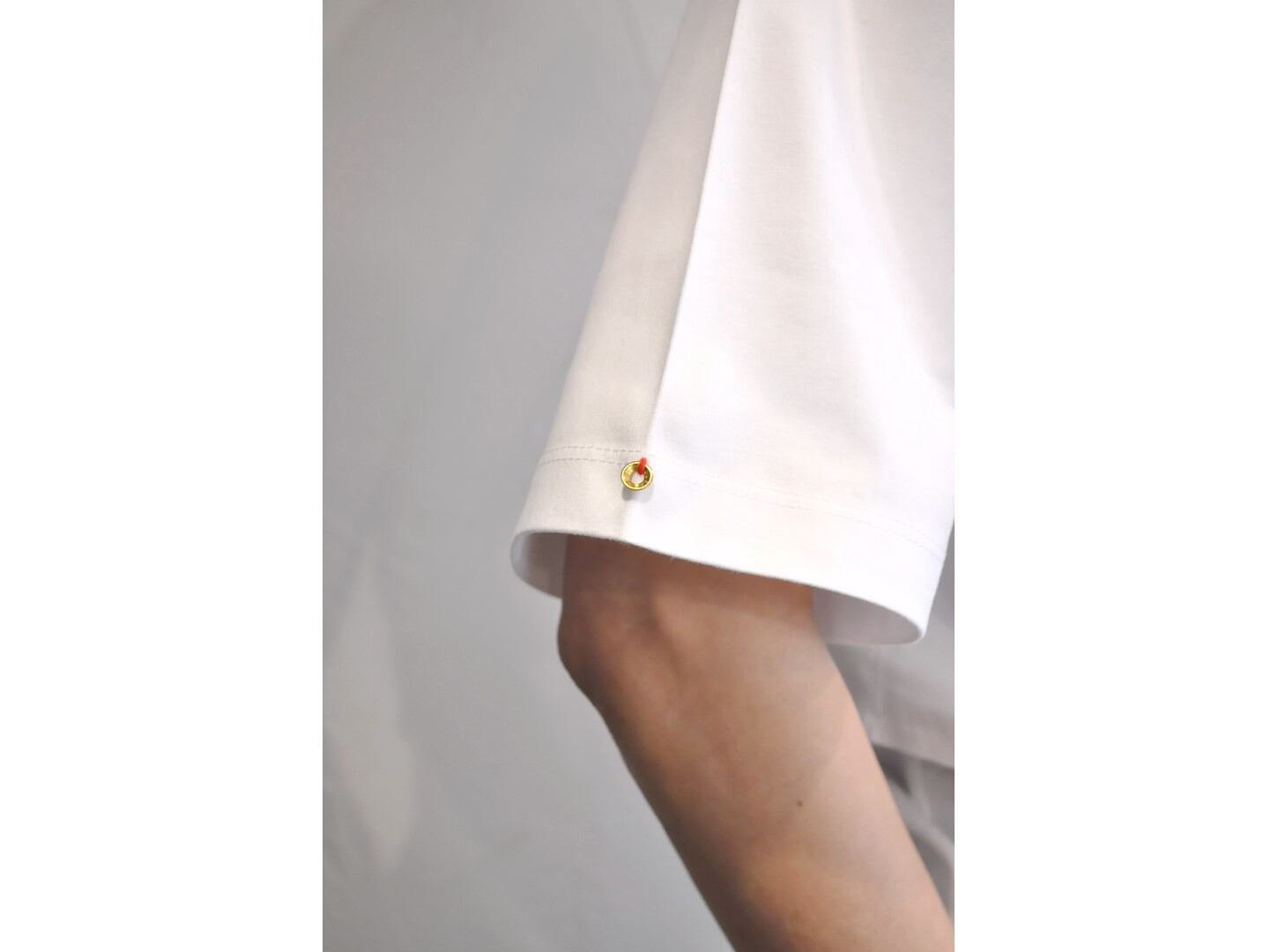 肉厚のコンパクトコーマ糸を使用したボディは、カジュアルになりすぎない程よい質感で、スタイリングに上品さを添えます。