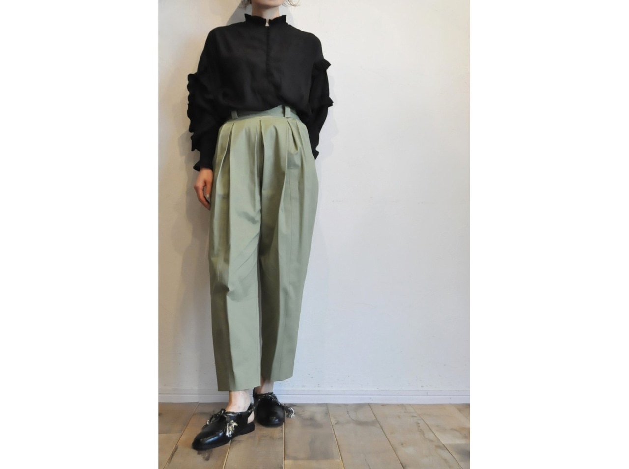 ●フロントのタックが印象的なタックパンツ。