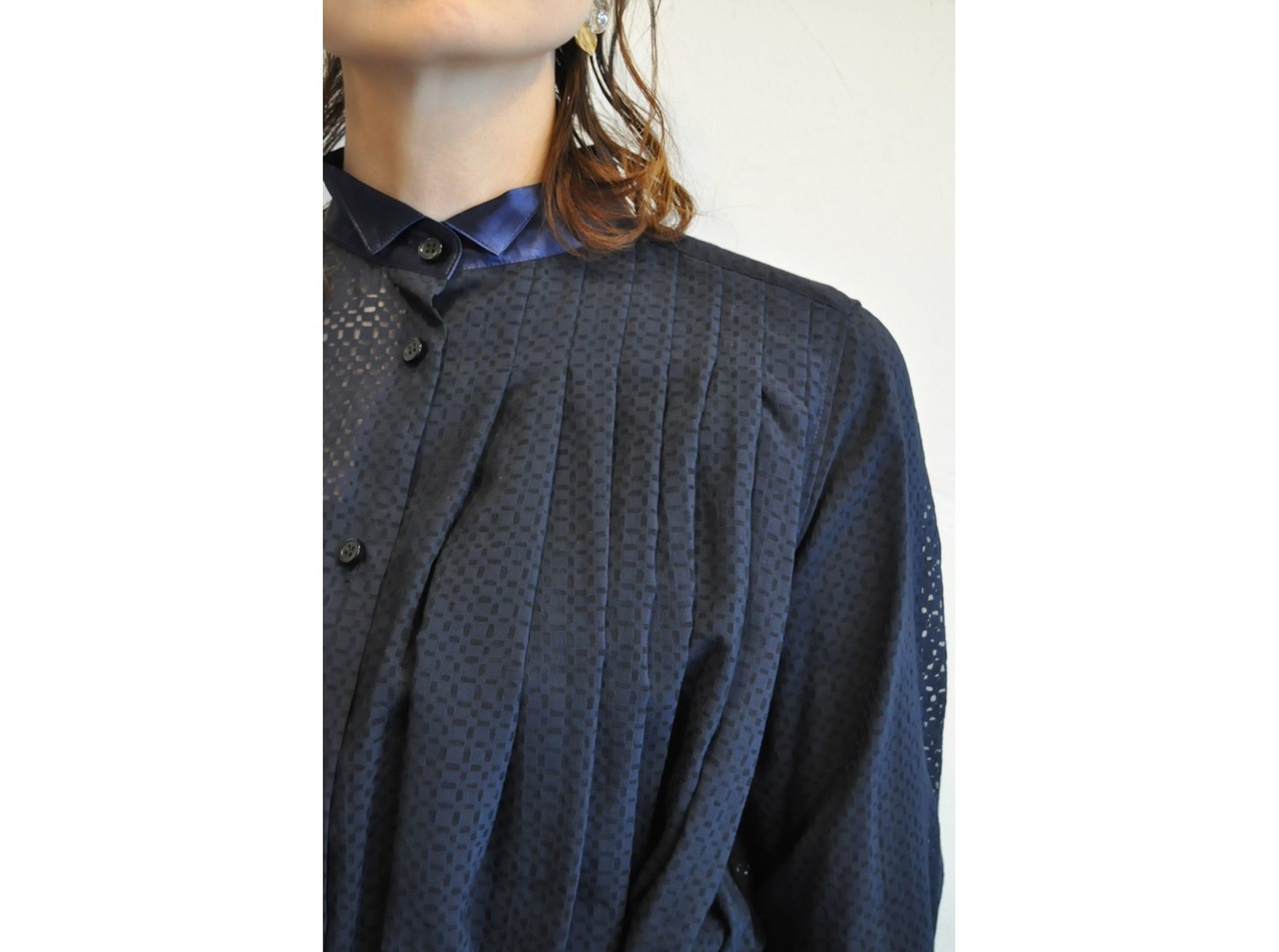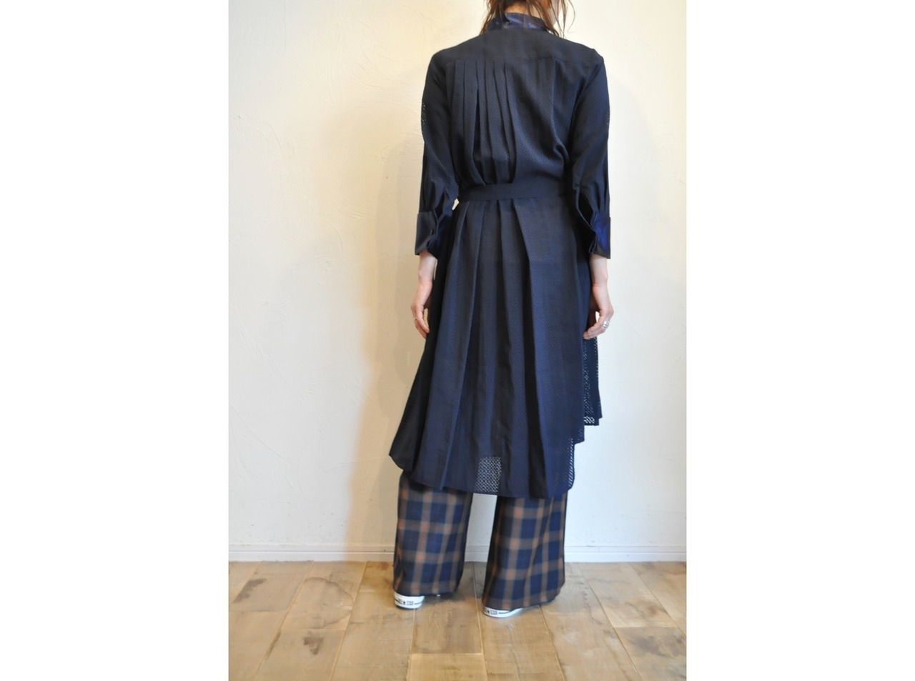 ●左側のフロント&バックがプリーツになったシャツワンピース。