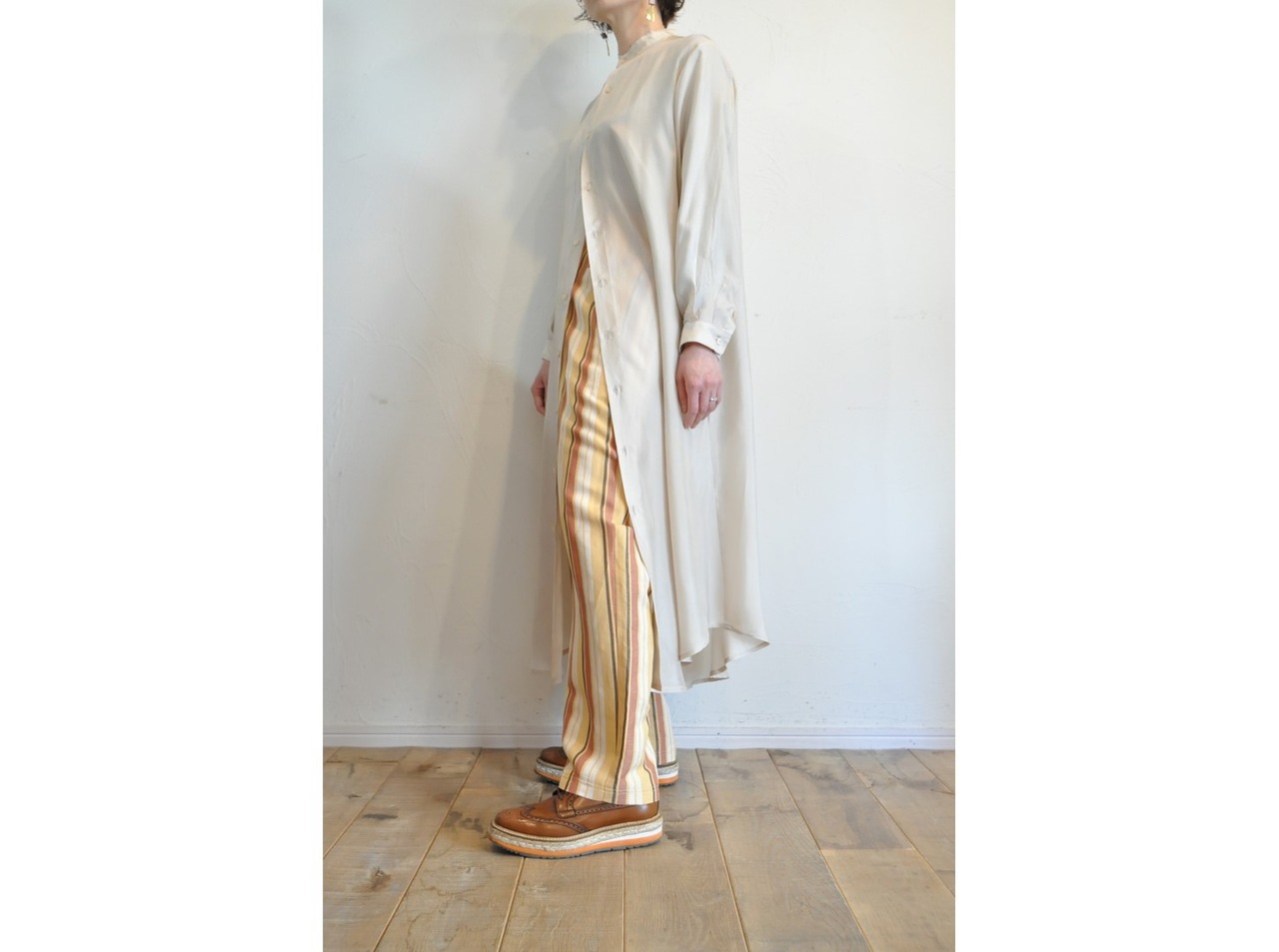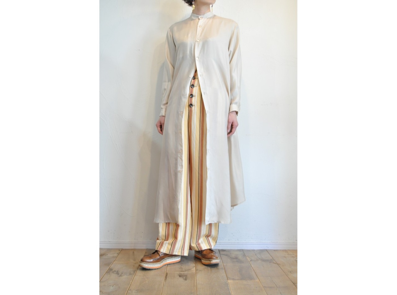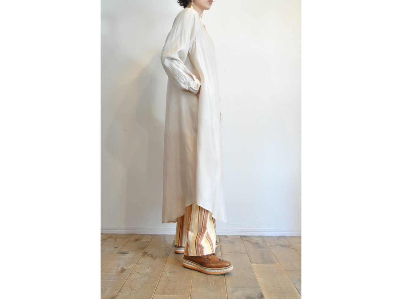 【hippiness】cupro long shirt onepiece /【ヒッピネス】キュプラロングシャツワンピース