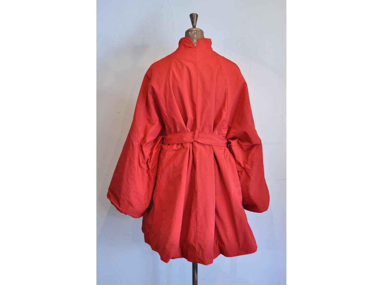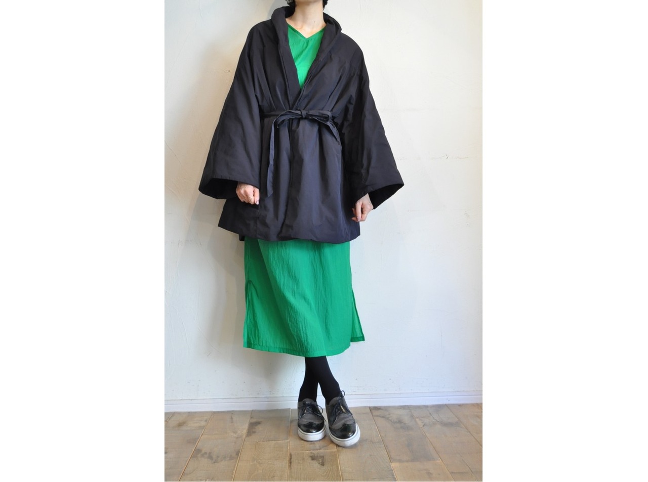 特殊な染料を使用し、壊れた繊維に着色をすることで独特な風合いを生み出す中綿コート。