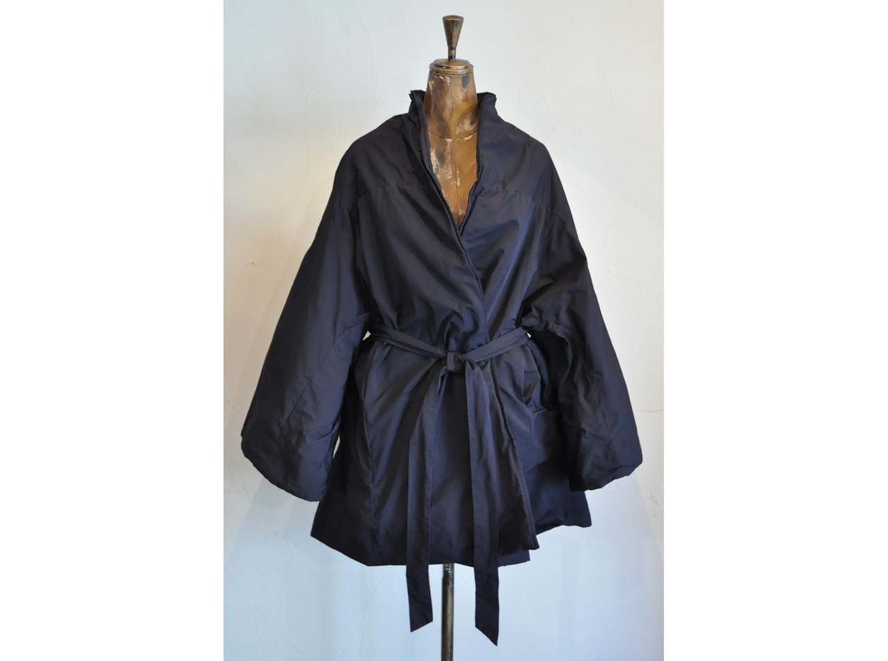 特殊な染料を使用し、壊れた繊維に着色をすることで独特な風合いを生み出す中綿コート。