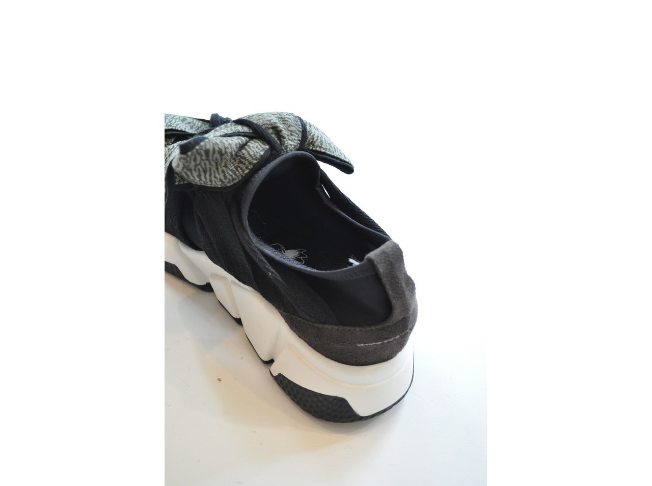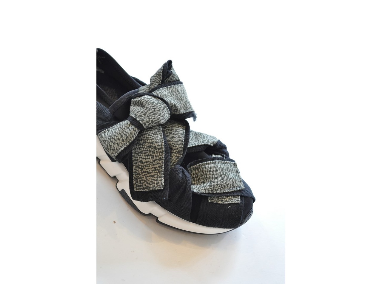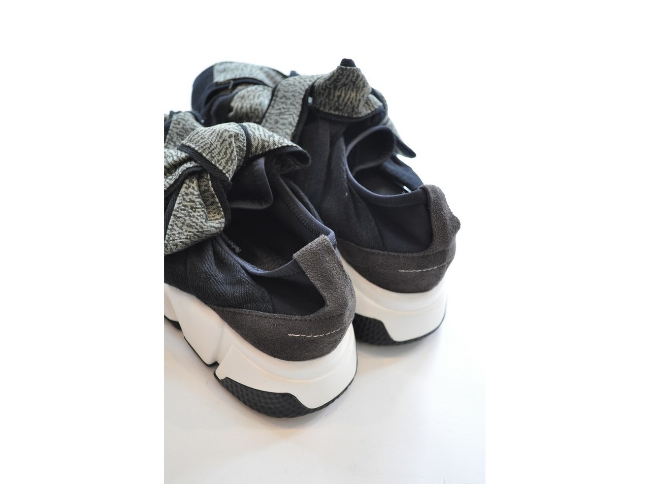 ●チノ生地のデジタルカモ柄をリボンにしたスニーカー。