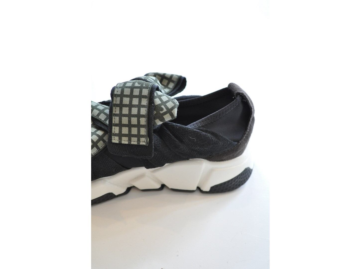 ●チノ生地のデジタルカモ柄をリボンにしたスニーカー。