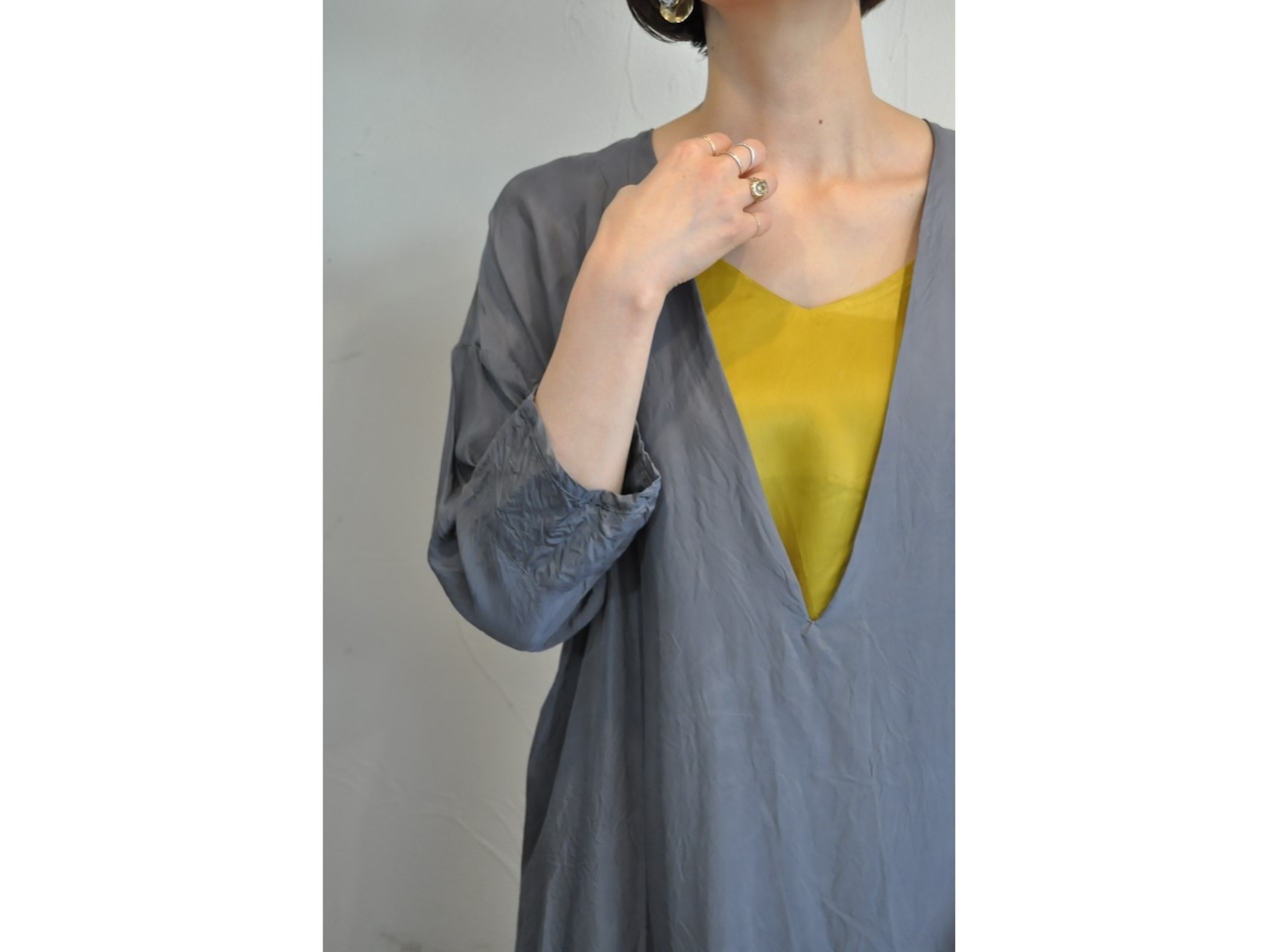 二枚仕立てで両サイドに深いスリットが入っており、歩くたびに揺れ動く様が美しいワンピースです。