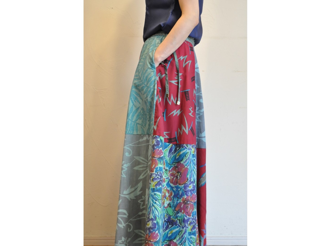 ●ユーズドのアロハシャツを贅沢に使用し、染色加工した豪華なスカート。