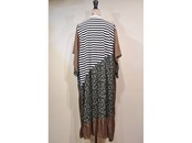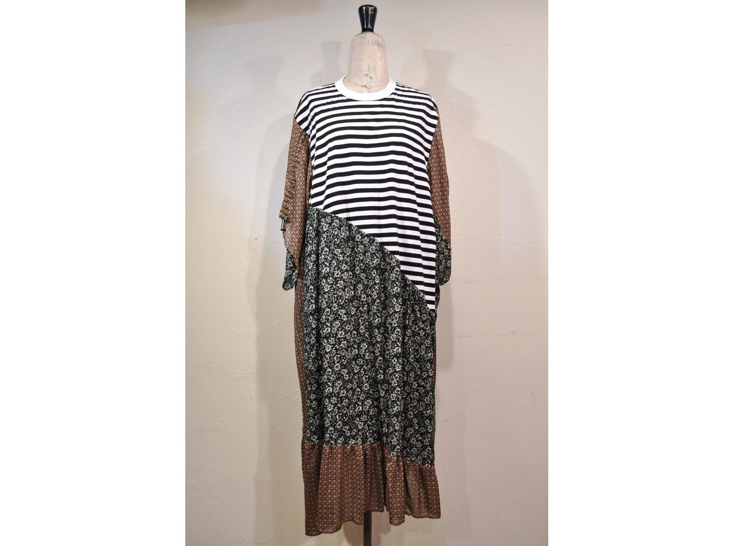 ●ボーダーカットソーにシフォンプリントと、レーヨンの花柄プリントを掛け合わせたボリューミーなワンピース。