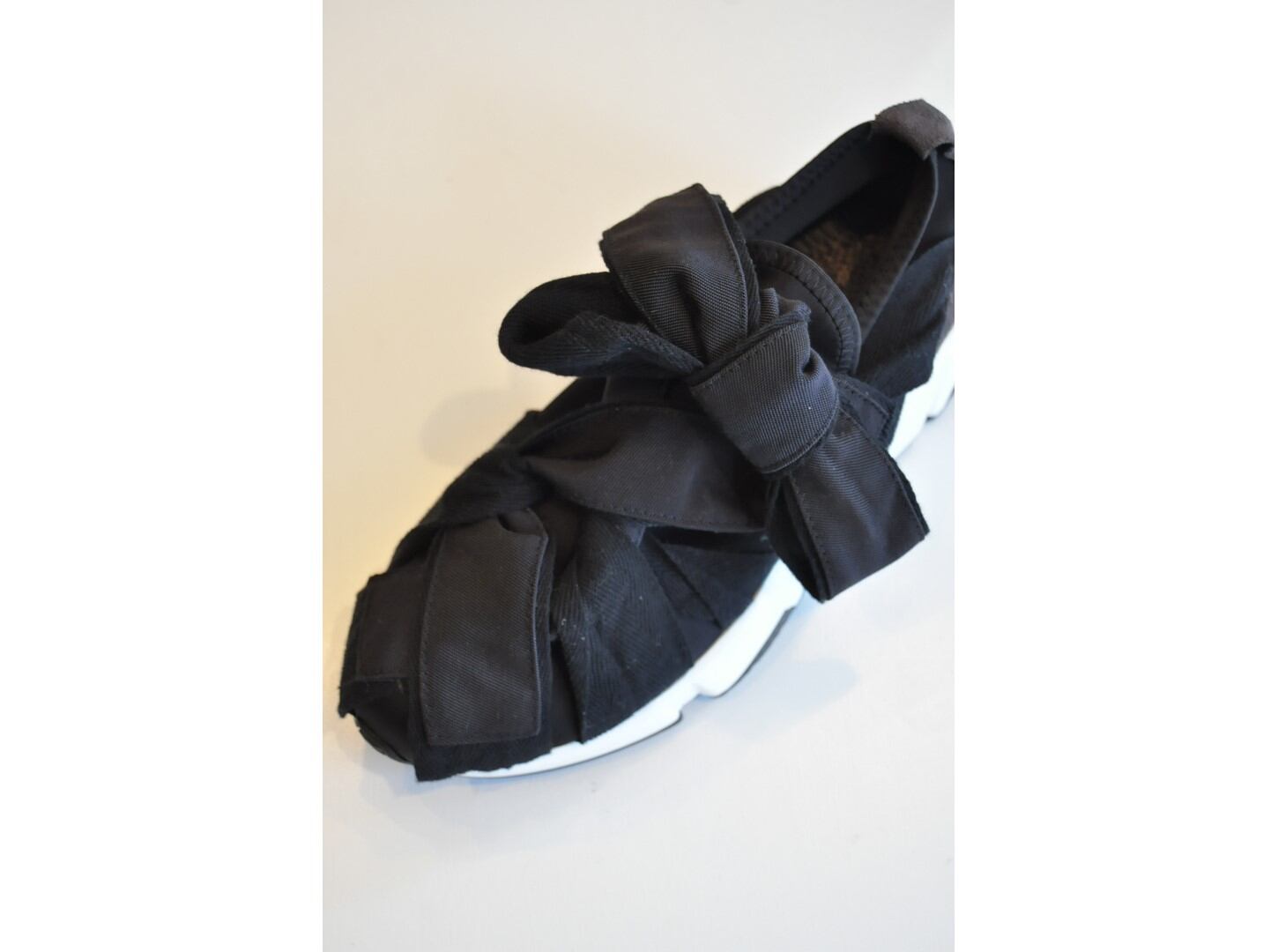 ●リボンにナイロンコットンのツイル生地を使用したスニーカー。