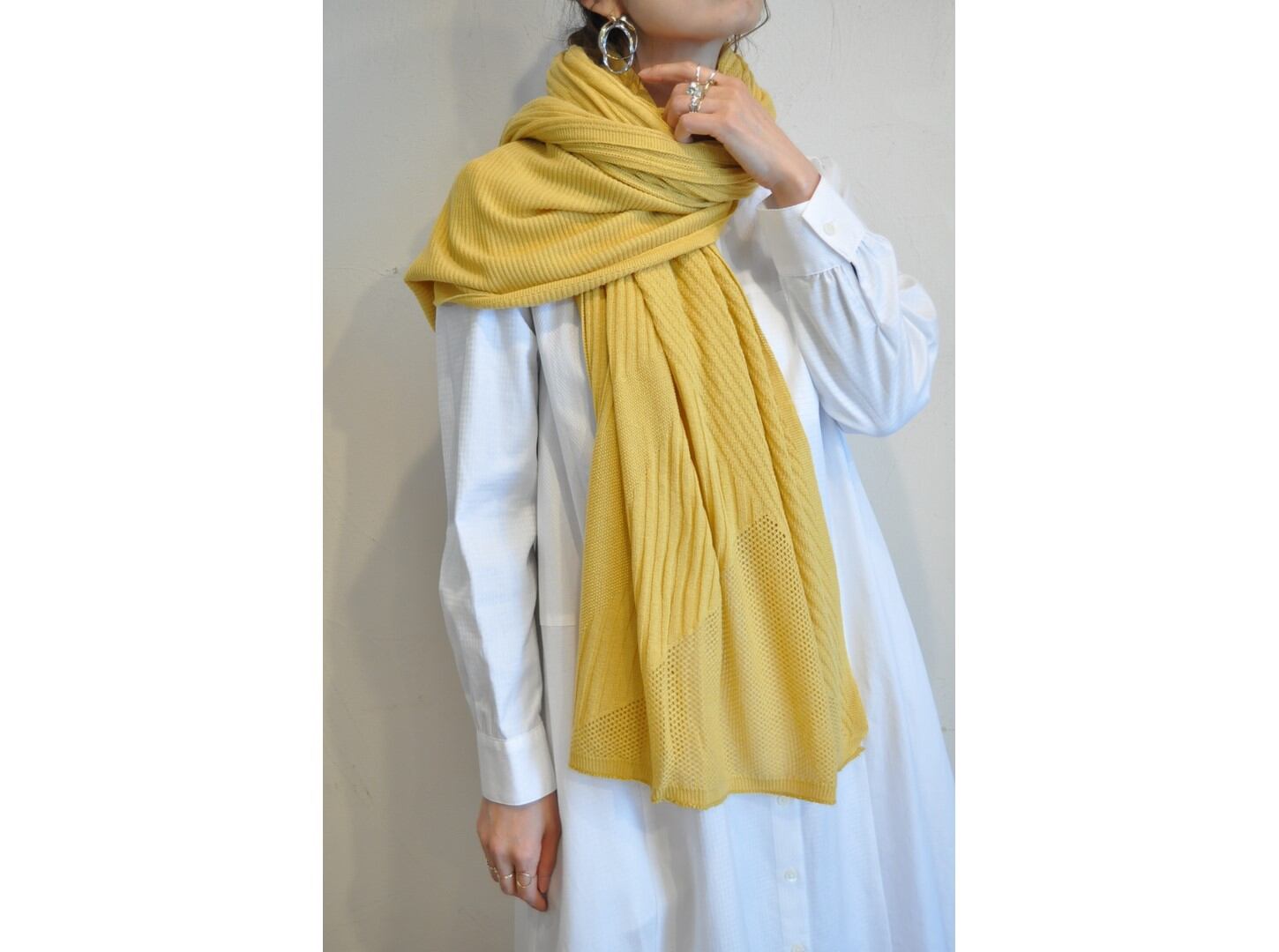 ●14種類のテキスタイルをランダムに組み合わせることで『光と影の表情』を具現化したhippinessオリジナルテキスタイルのストール。