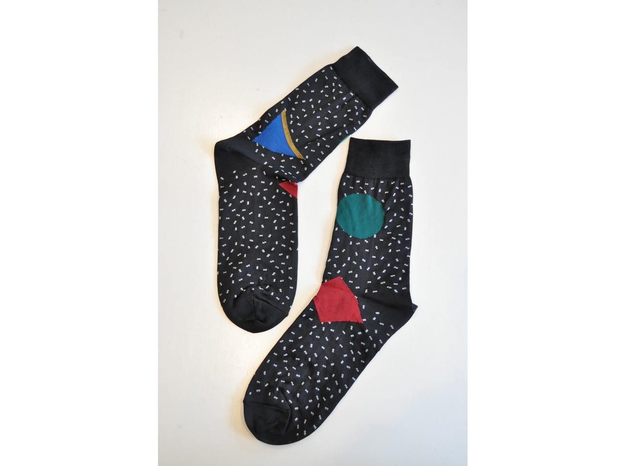 ●カラフルな図形が編まれたソックス。