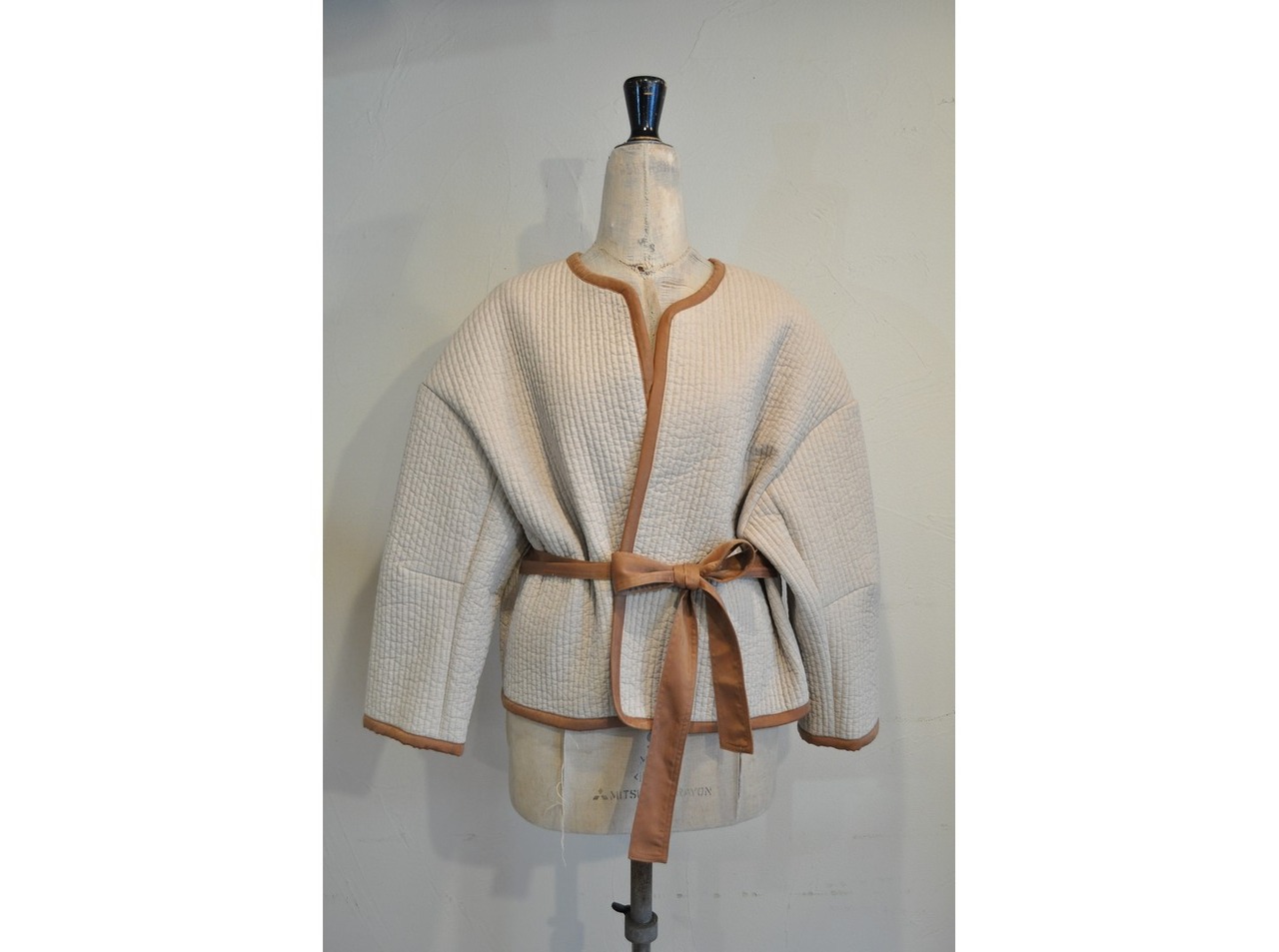 起毛したサテンで配色にしたトリミングがポイント。