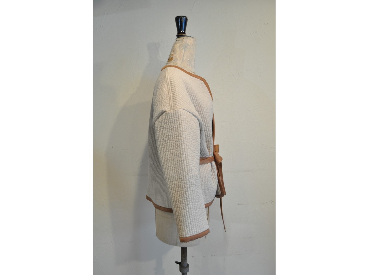 前をサイドの紐で結ぶことで前身頃が重なる、収まりの良い形。