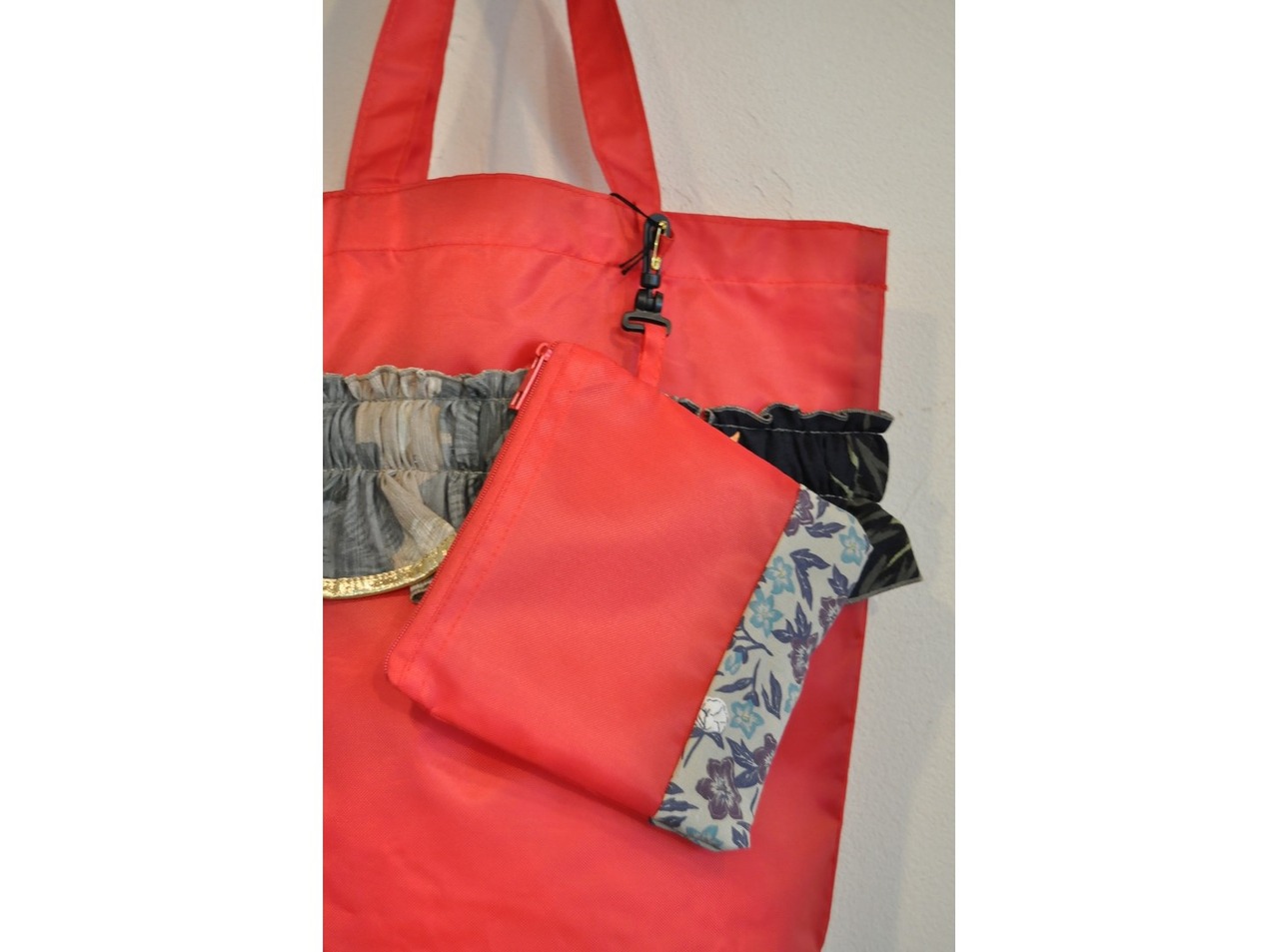 ●アロハシャツの端切れを使用したフリルがついたマチ付きトート。