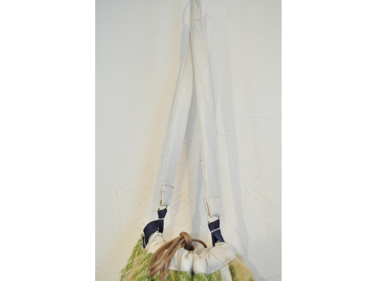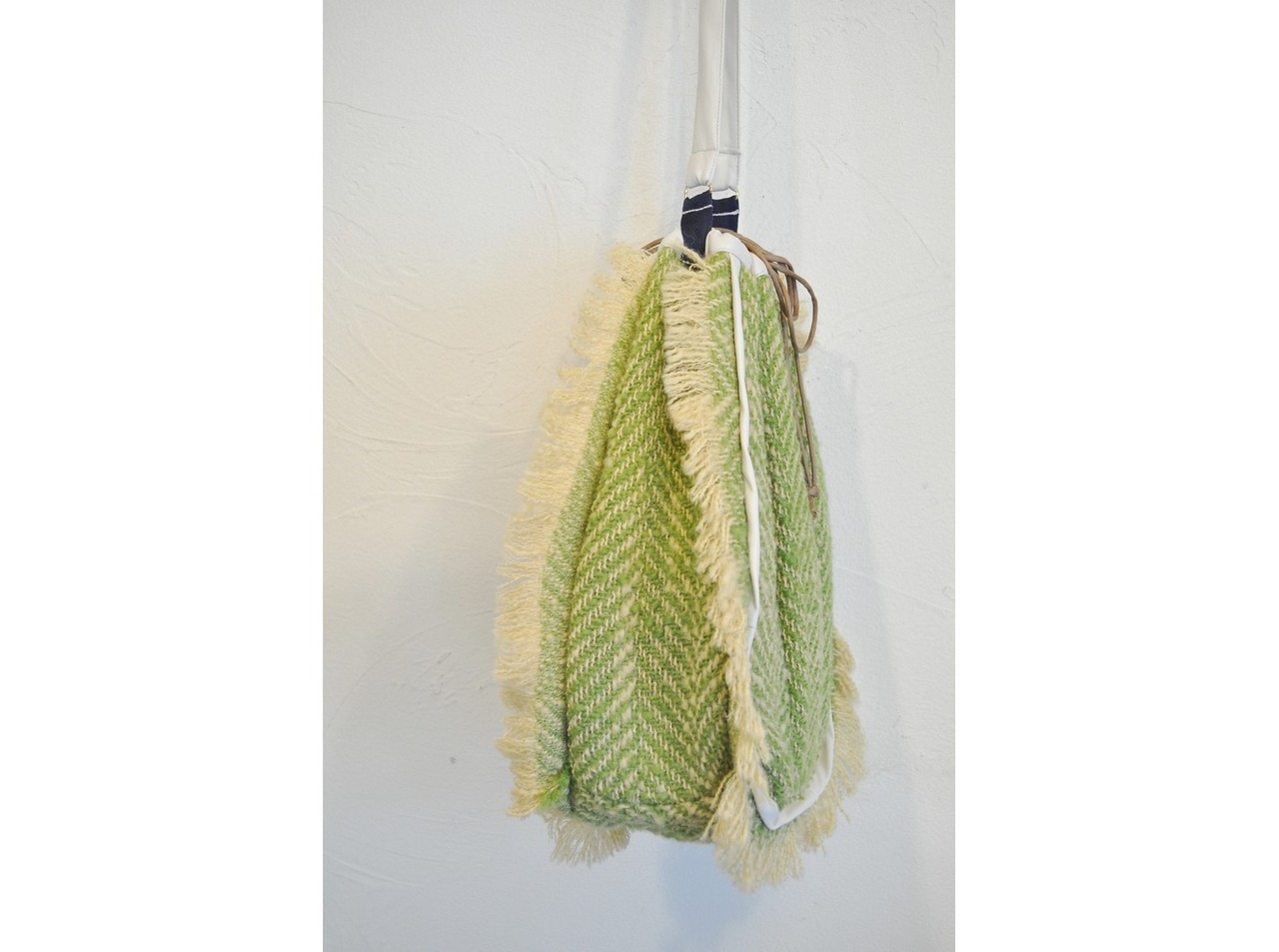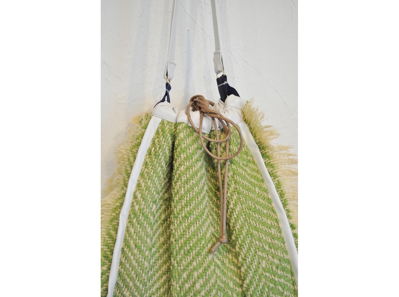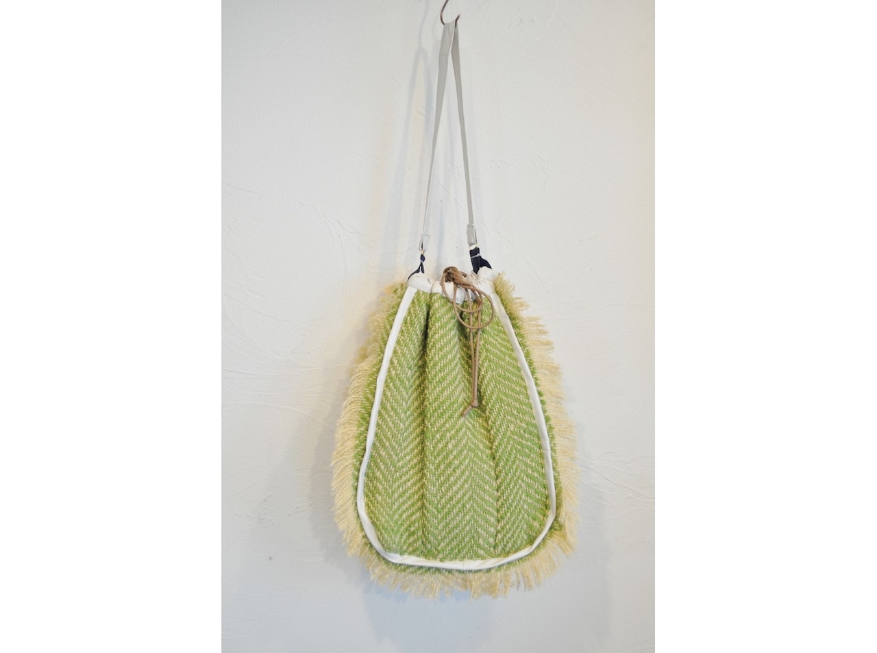 ●贅沢に手ほどきで作るツイードフリンジでアクセントになるバック。