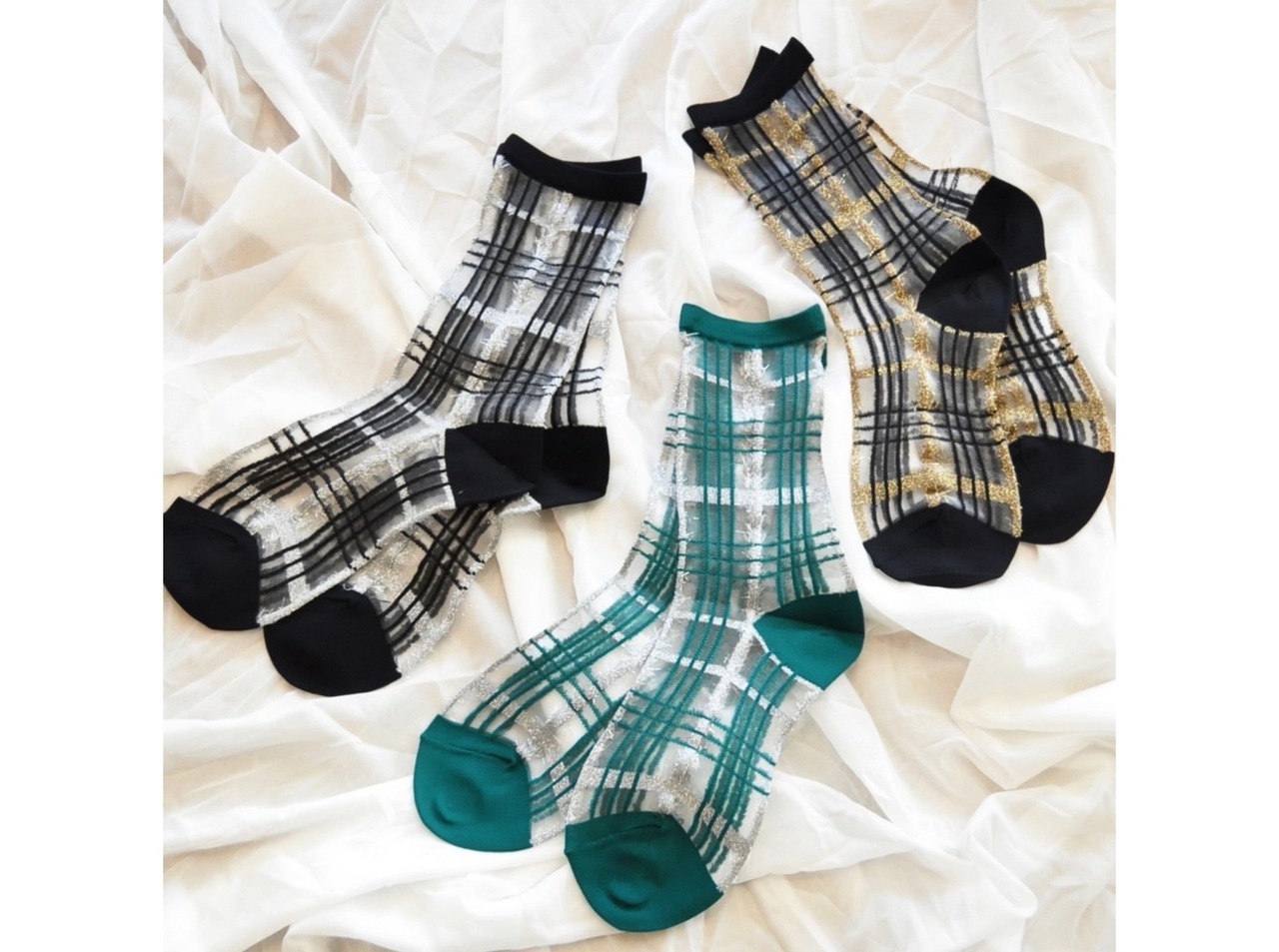 【fakui】see through glitter check socks /【ファクイ】シースルーグリッターチェックソックス