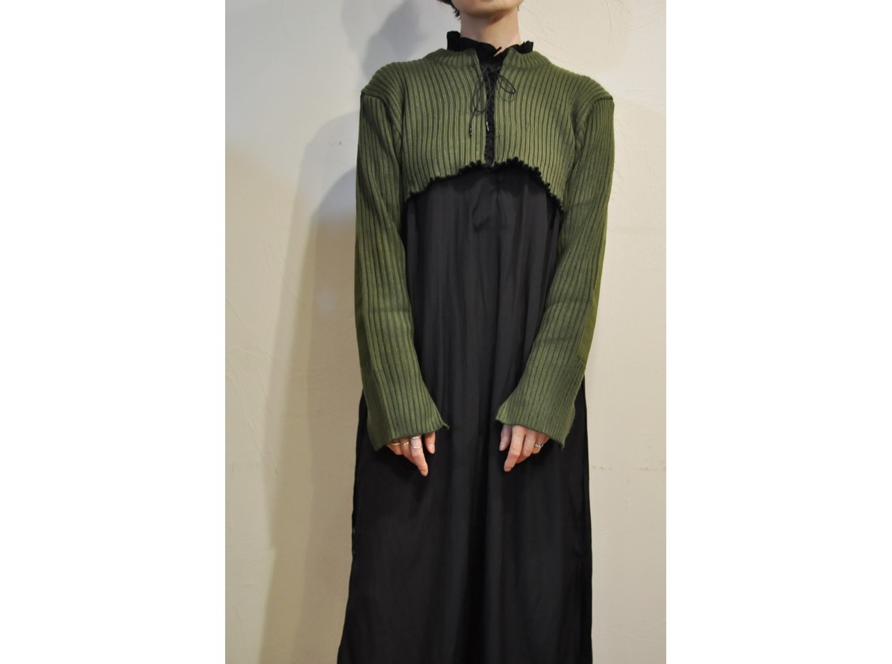 ●中のキャミソールと上にかぶせるショートボレロで構成されたアンサンブルタイプのリメイクセーター。別々でも使えて様々なスタイリングを楽しめます。