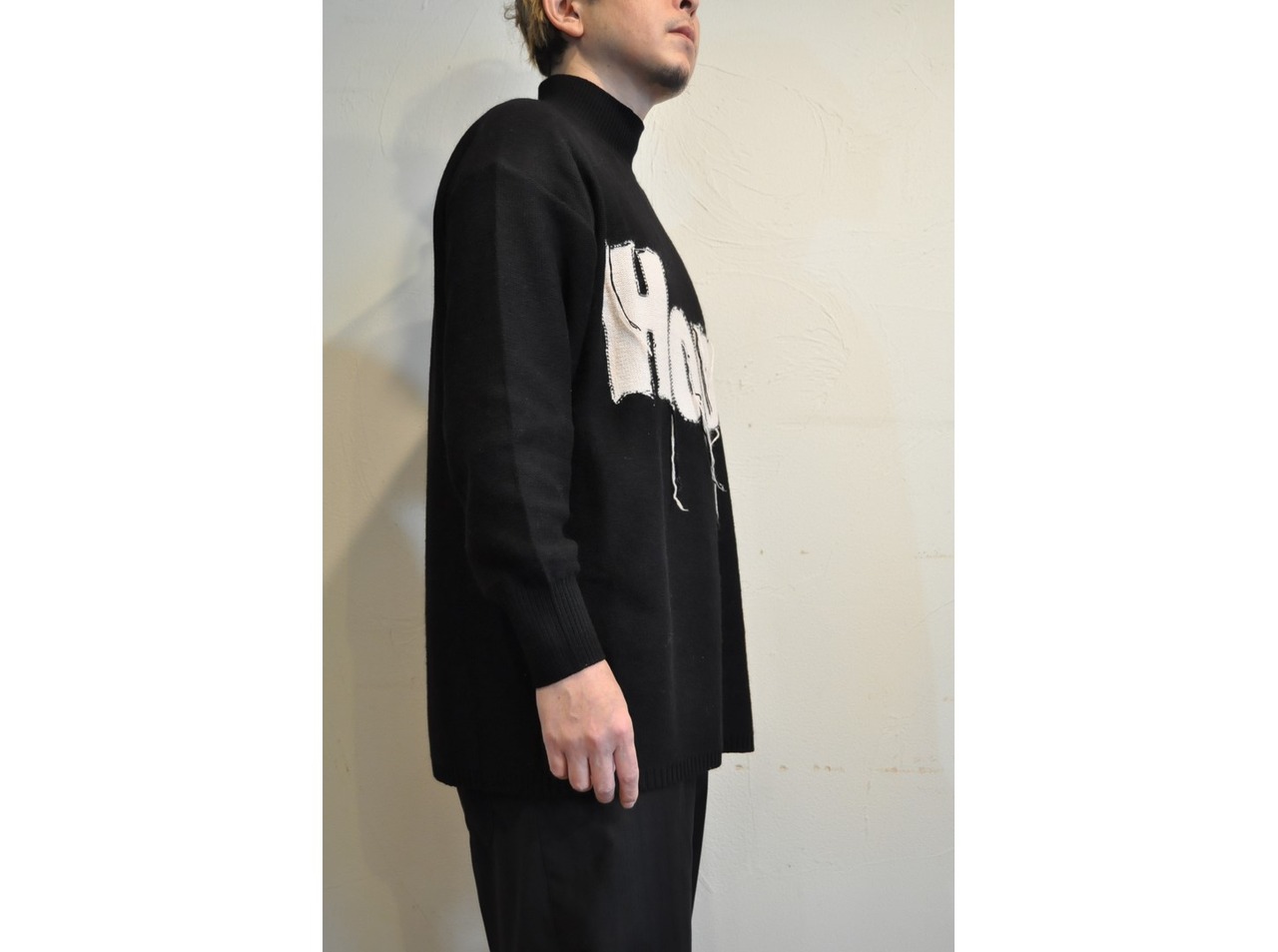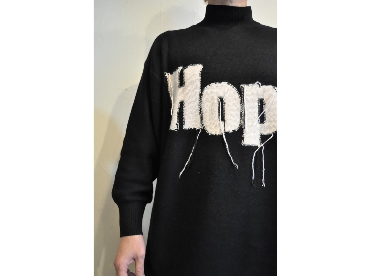 HOPEのロゴを手描きでアレンジして作成し、ニットは裏編みで垂れ糸が特徴的です。