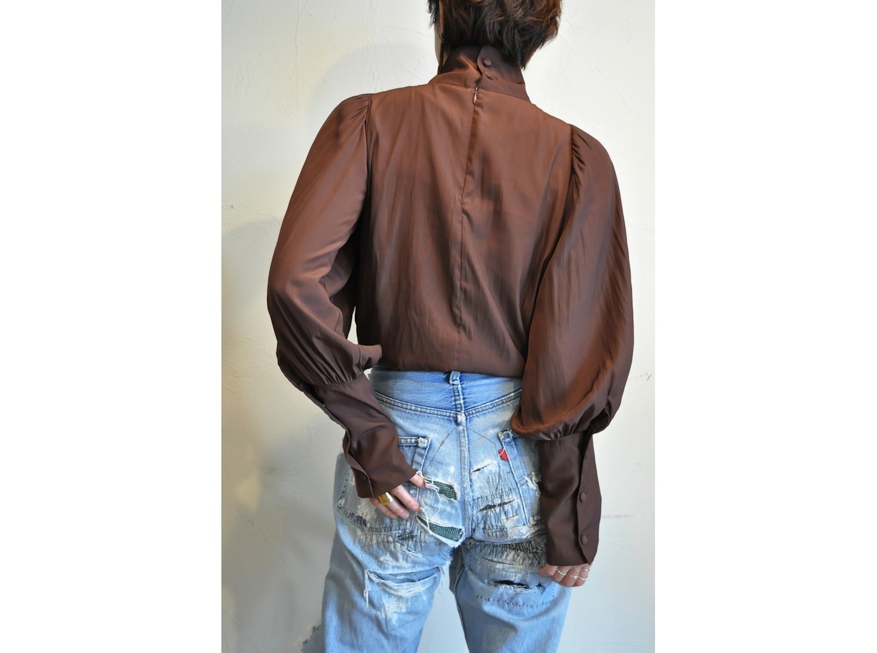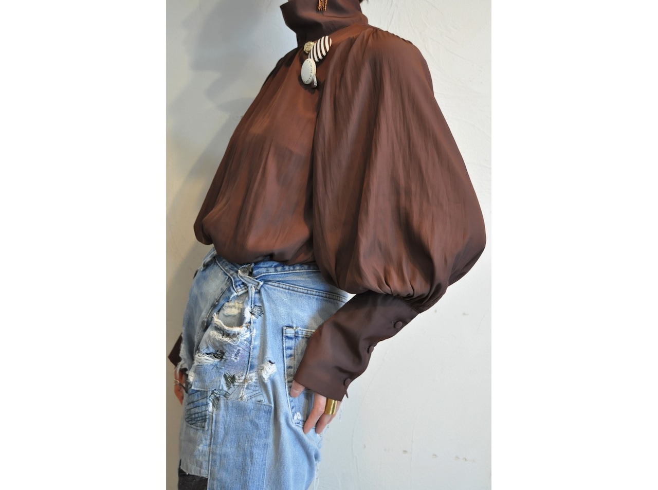 ●たっぷりギャザーのボリュームスリーブハイネックブラウス。
