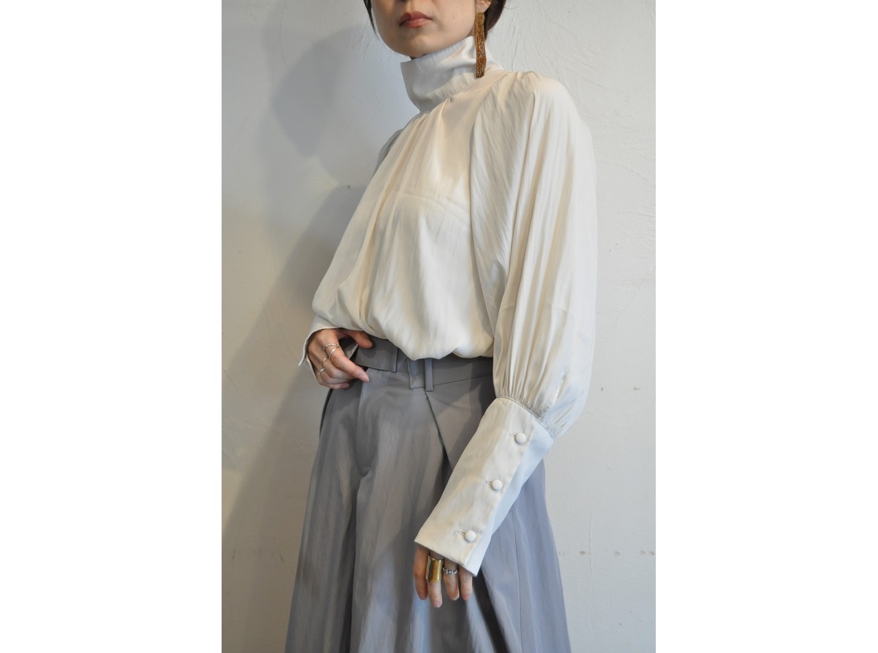 ●たっぷりギャザーのボリュームスリーブハイネックブラウス。