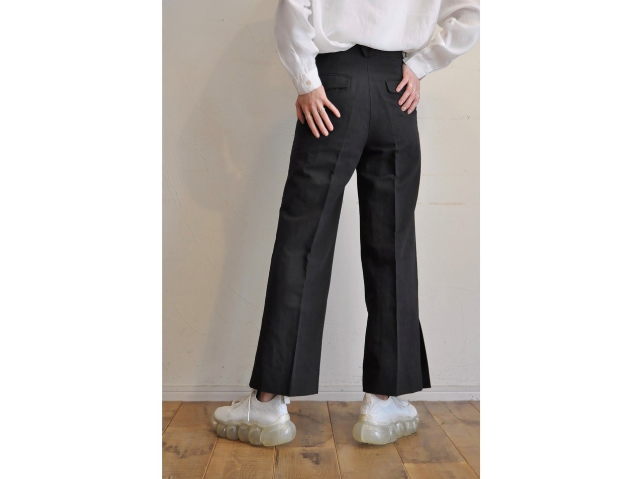 程よい太さでスッキリと見えるラインが綺麗なパンツ。