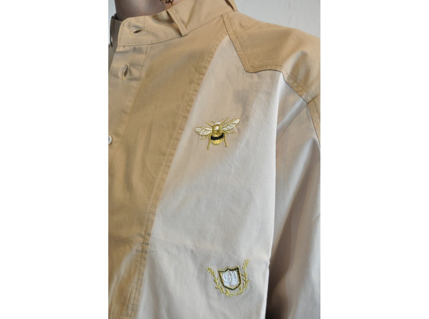 ●ハチの刺繍を施した、スタンドカラーのシャツです。