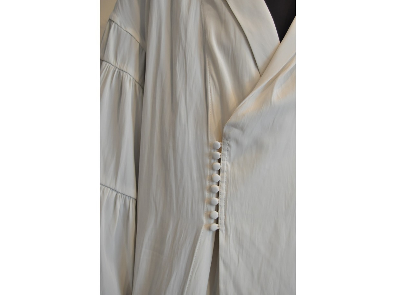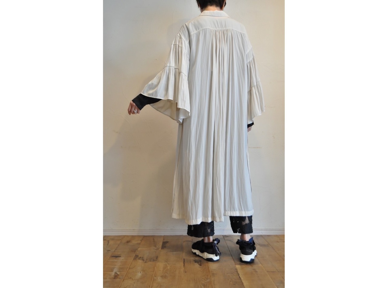 ティアードになった袖、ワイドな身幅、たっぷりギャザーの入ったバックスタイルと、贅沢に生地を使っています。