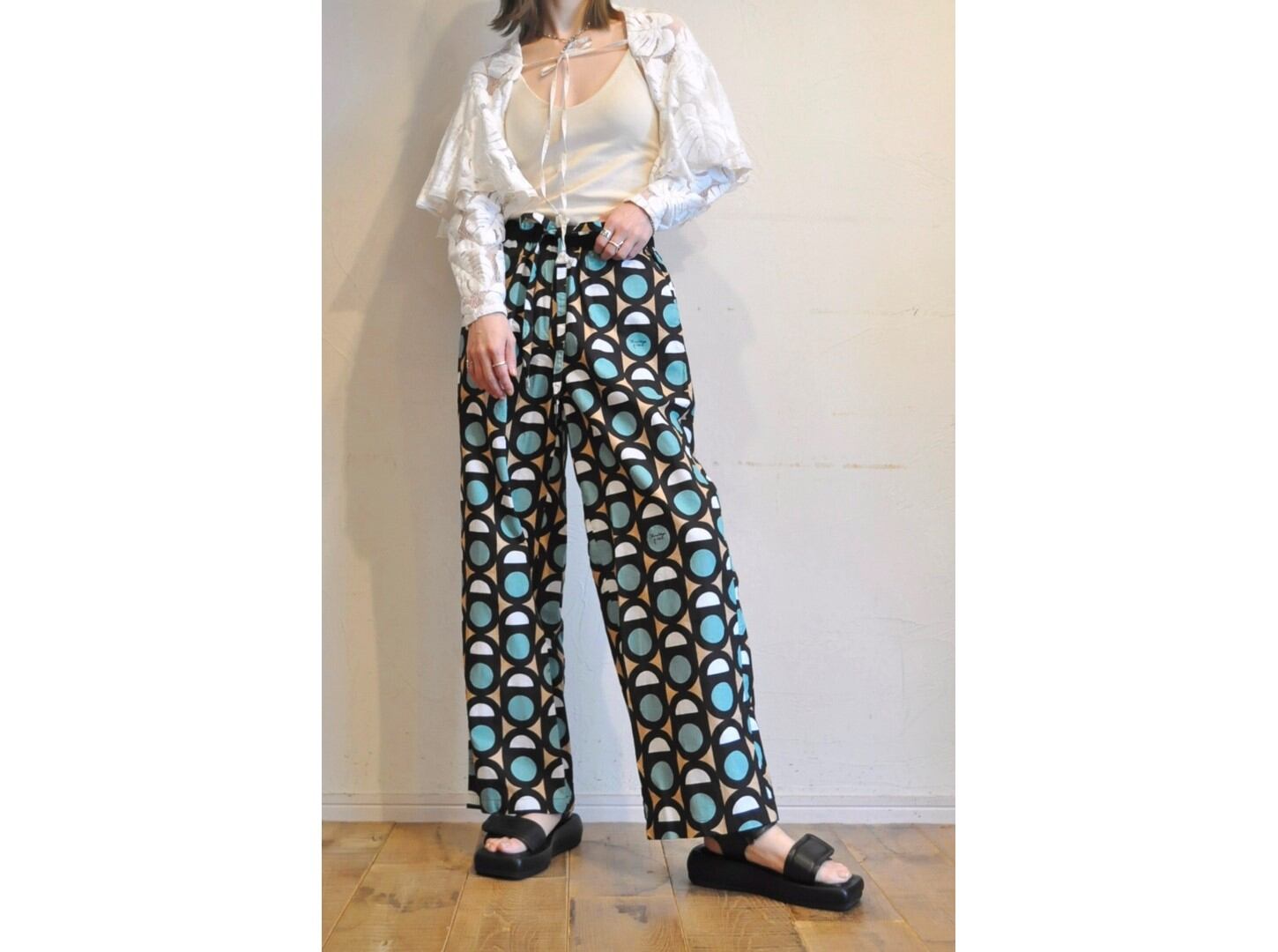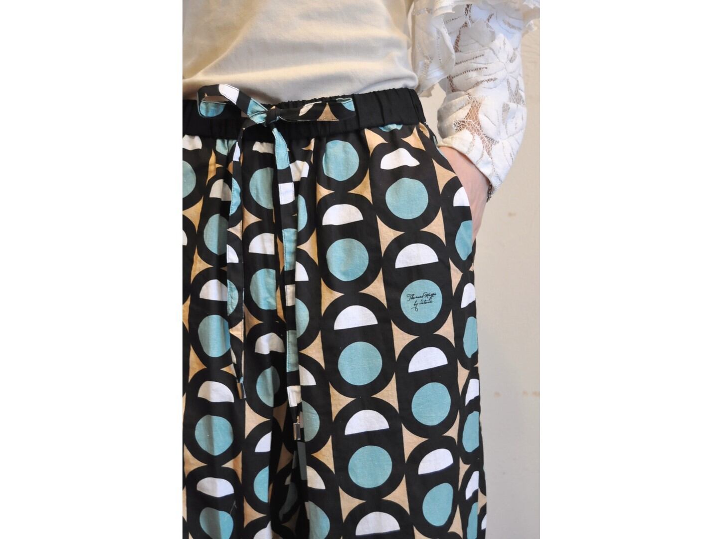 ●コットンラミー素材にオリジナル柄のプリントをのせたイージーパンツ。