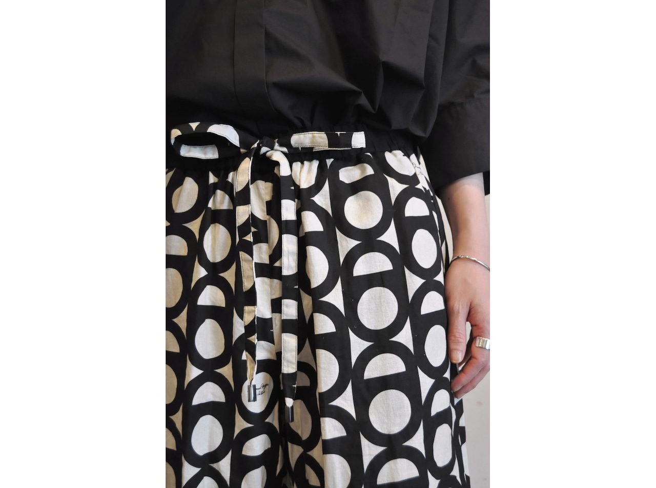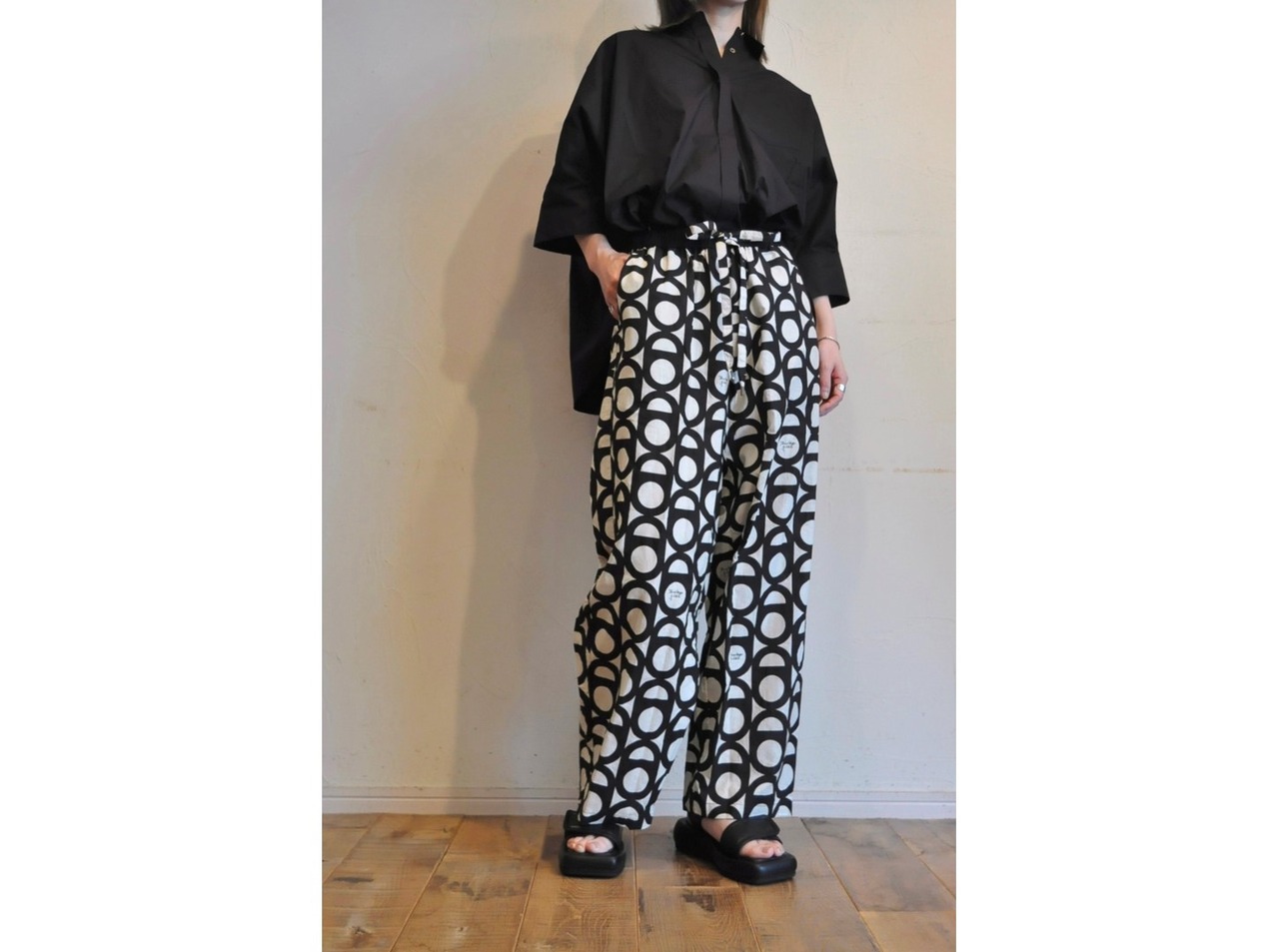 ●コットンラミー素材にオリジナル柄のプリントをのせたイージーパンツ。