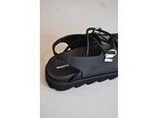 つま先は、オープントゥ型、中央は、異素材のPVCベルトが涼し気な夏のスタイルアップにぴったりなデザインです。