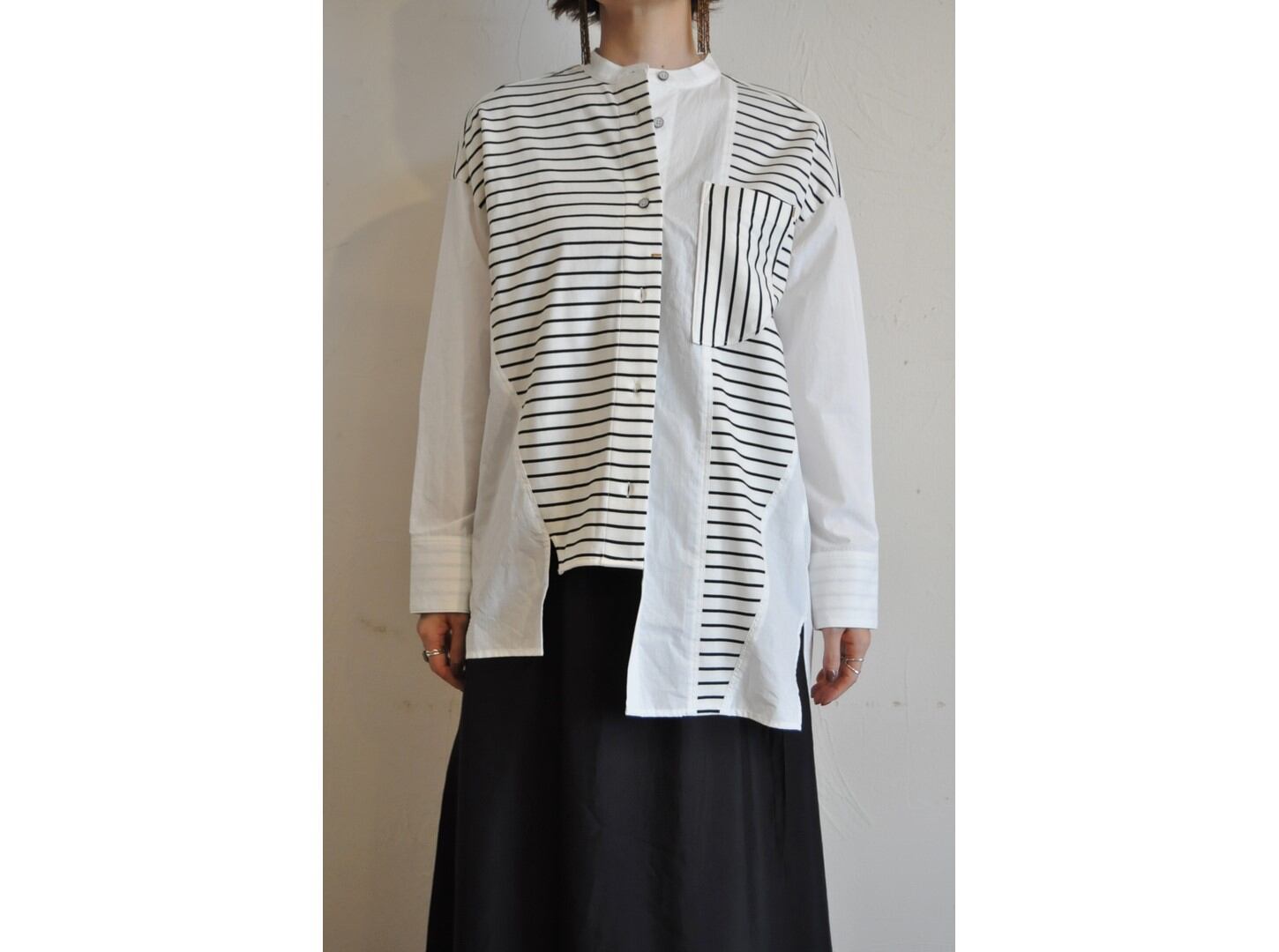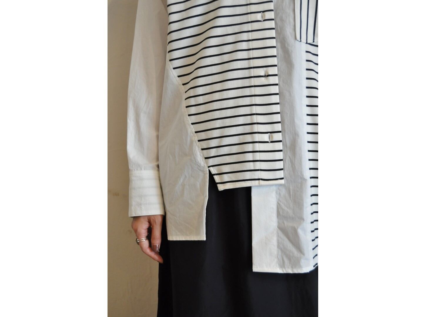 ●モノトーン異素材MIXでモードテイストなブラウス。