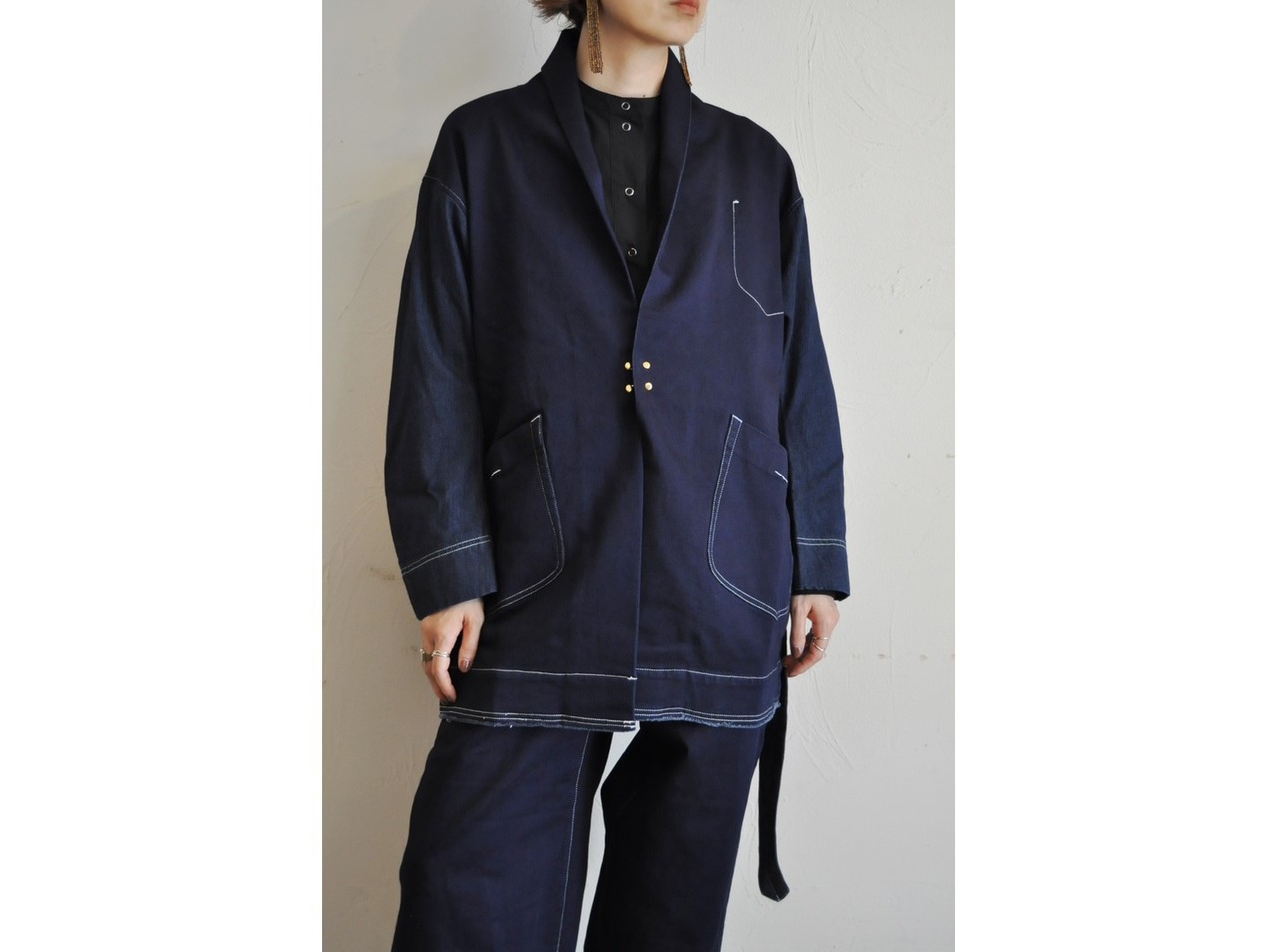 襟はガウンらしくショールカラーでパッチポケットは少し繊細な形になっています。