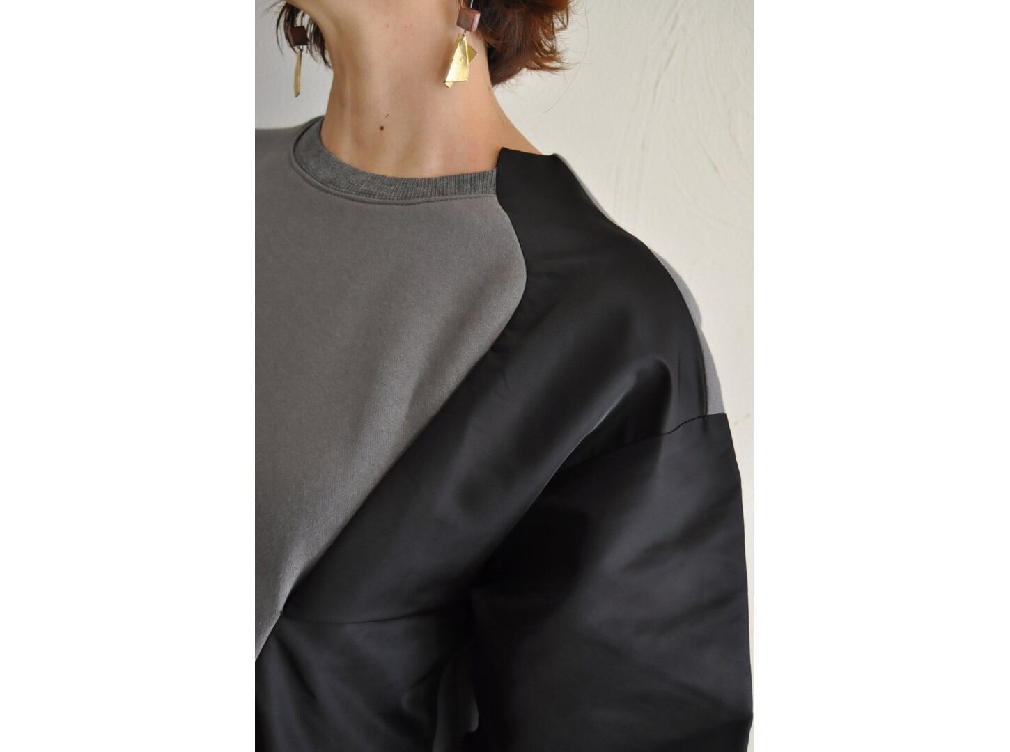 ●裏毛とナイロンタフタ生地が切り替えになったワンピース。