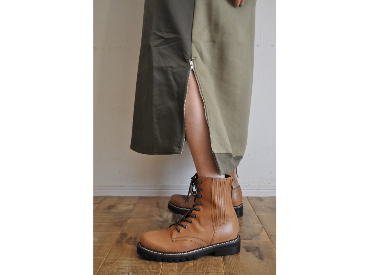 両サイドの裾にファスナーが付いていて、スリットが作れるようになっているのでボトムとのレイヤードがしやすくなっています。