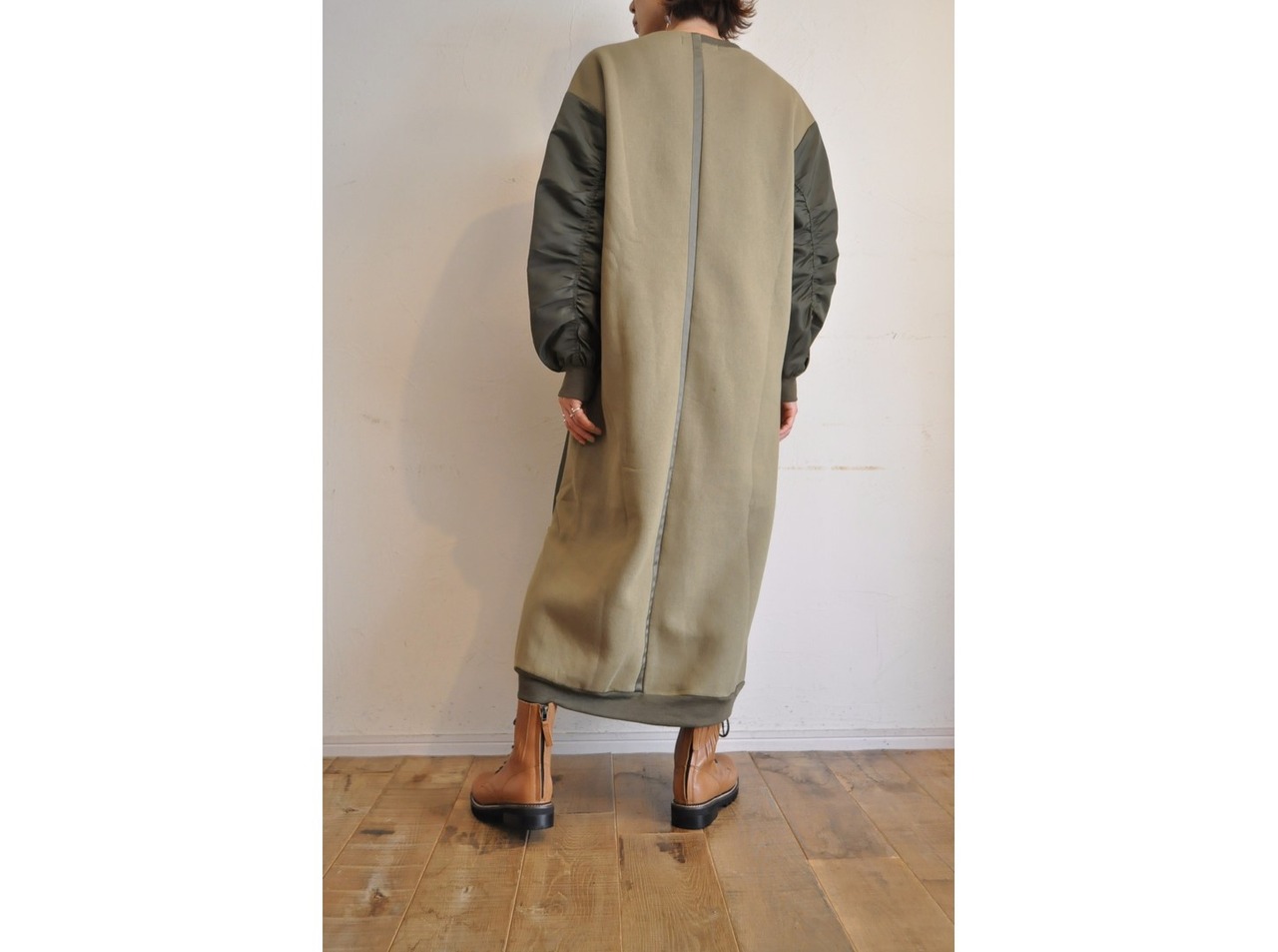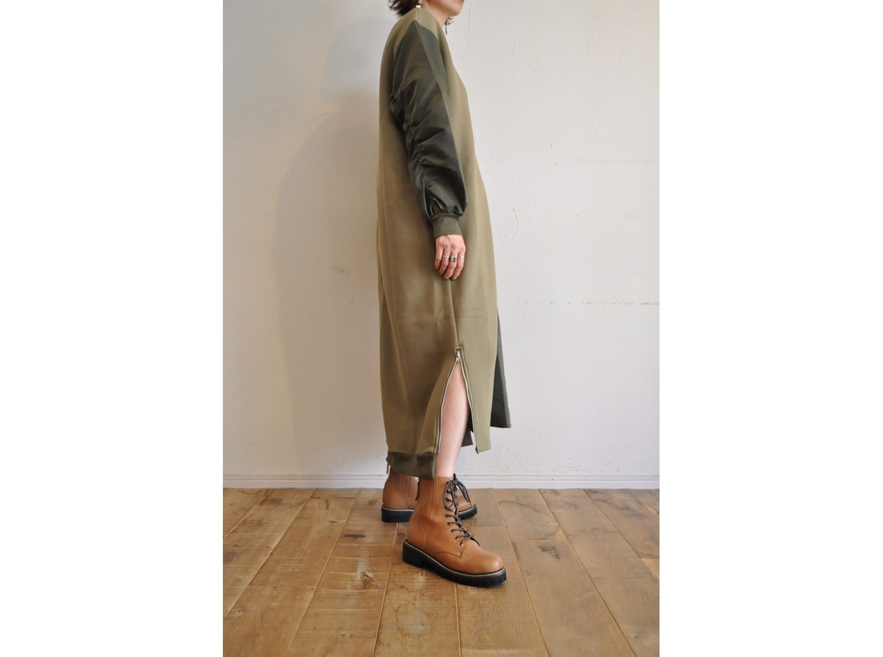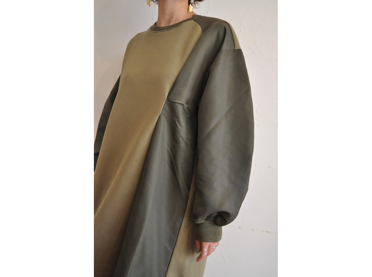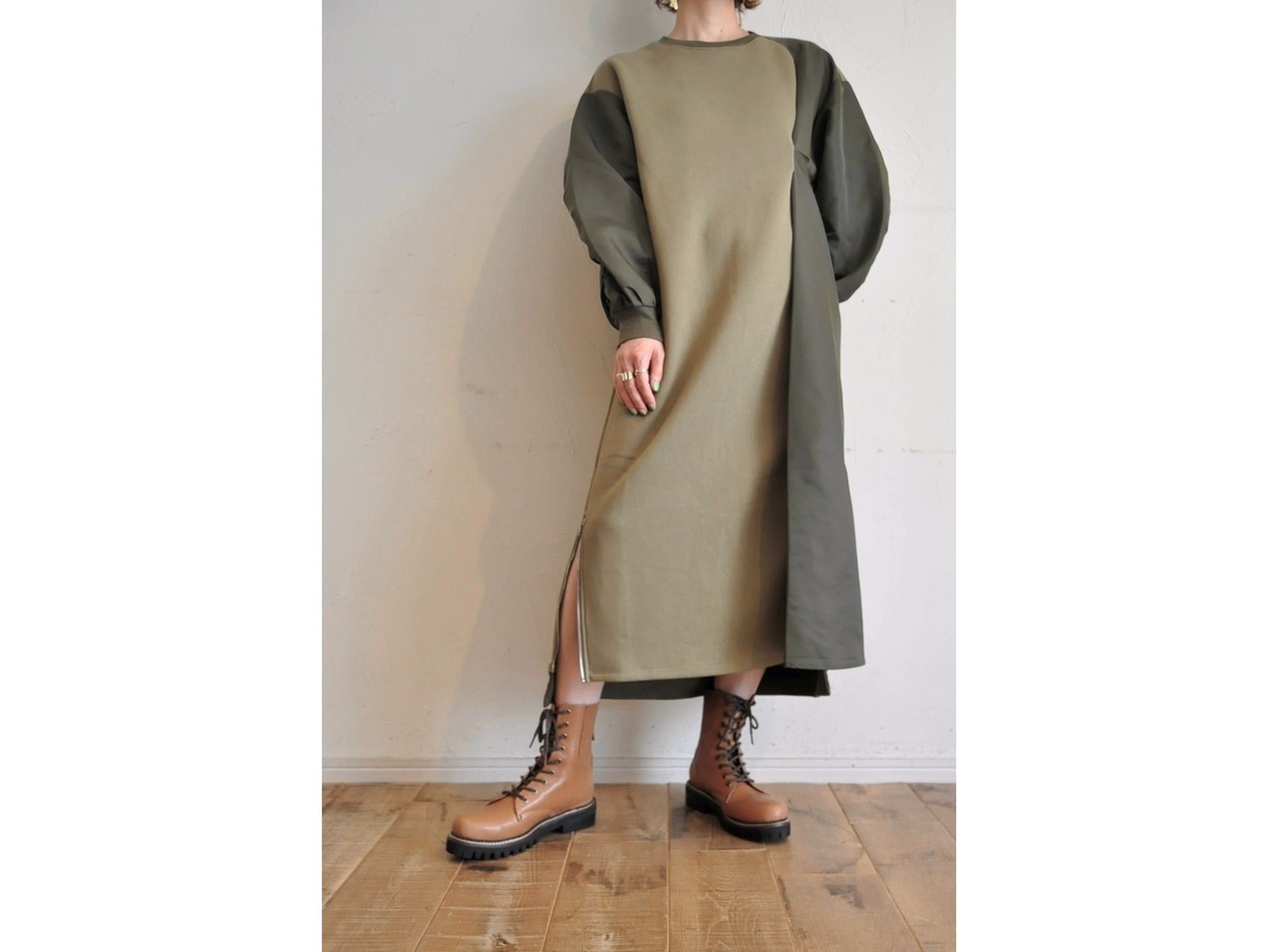 ●裏毛とナイロンタフタ生地が切り替えになったワンピース。